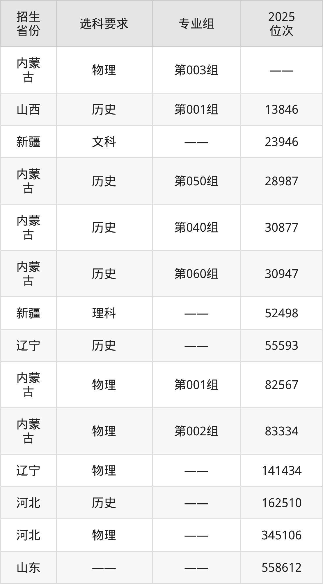 鄂尔多斯职业学院2025年在全国各省的位次差异较大,最高位次是13846位(山西历史类)、最低位次是558612位(山东)。各省具体位次请看下图:
