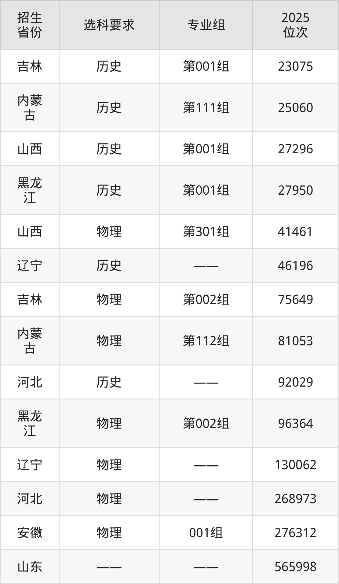 山东经贸职业学院2025年在全国各省的位次差异较大,最高位次是23075位(吉林历史类)、最低位次是565998位(山东)。各省具体位次请看下图:
