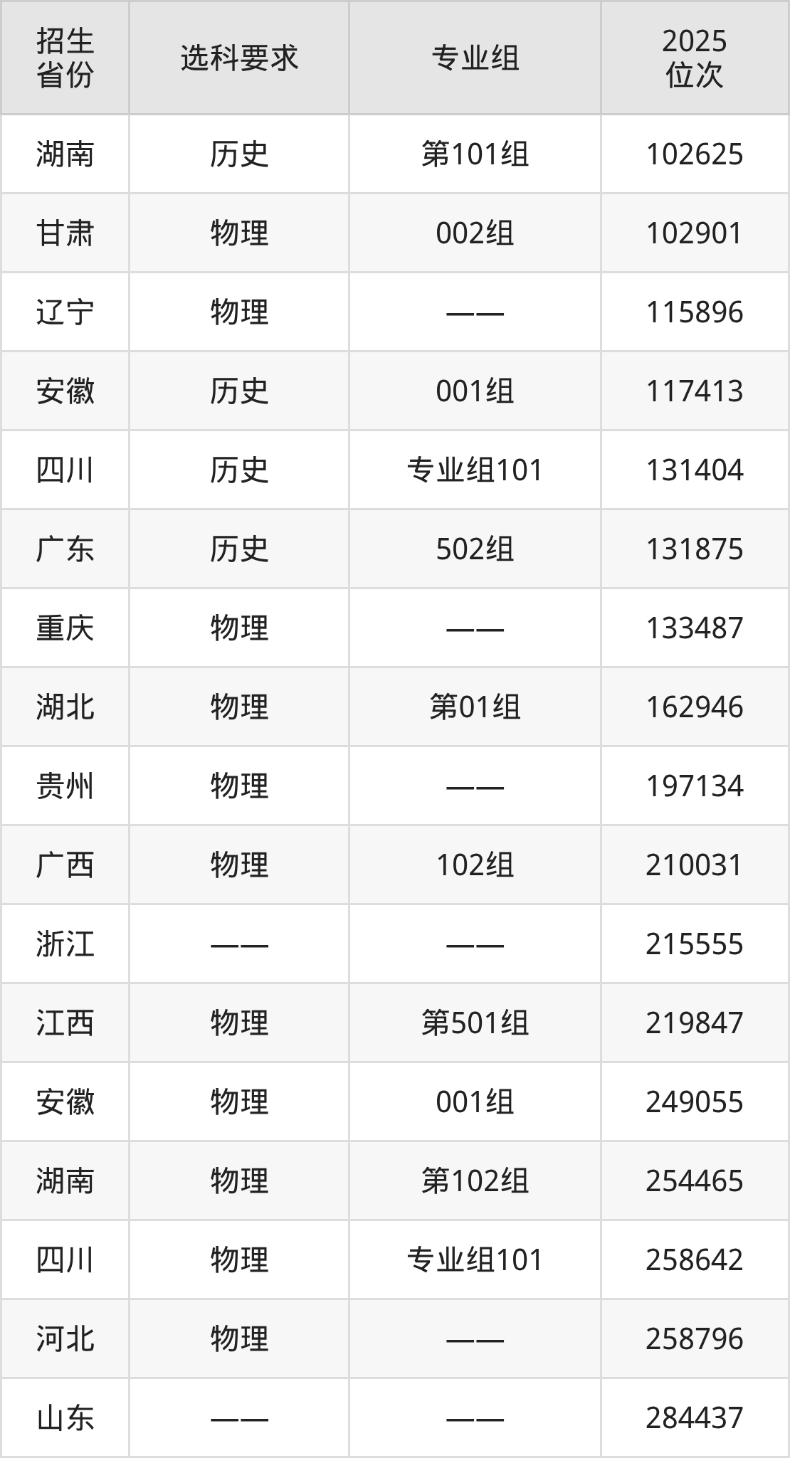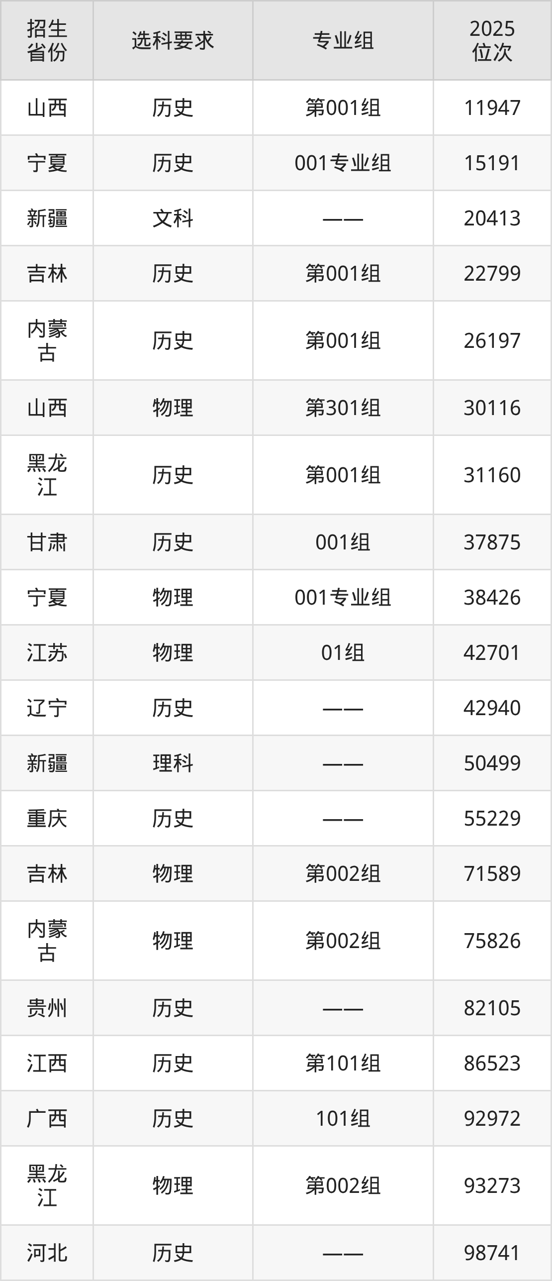天津生物工程职业技术学院2025年在全国各省的位次差异较大,最高位次是11947位(山西历史类)、最低位次是284437位(山东)。各省具体位次请看下图: