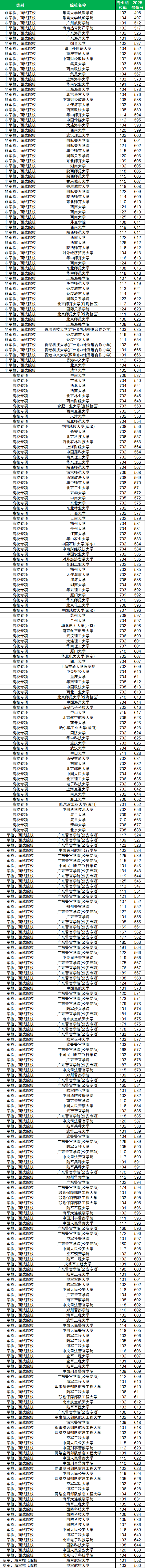 (滑动查阅广东2025年本科提前批历史类录取数据)
