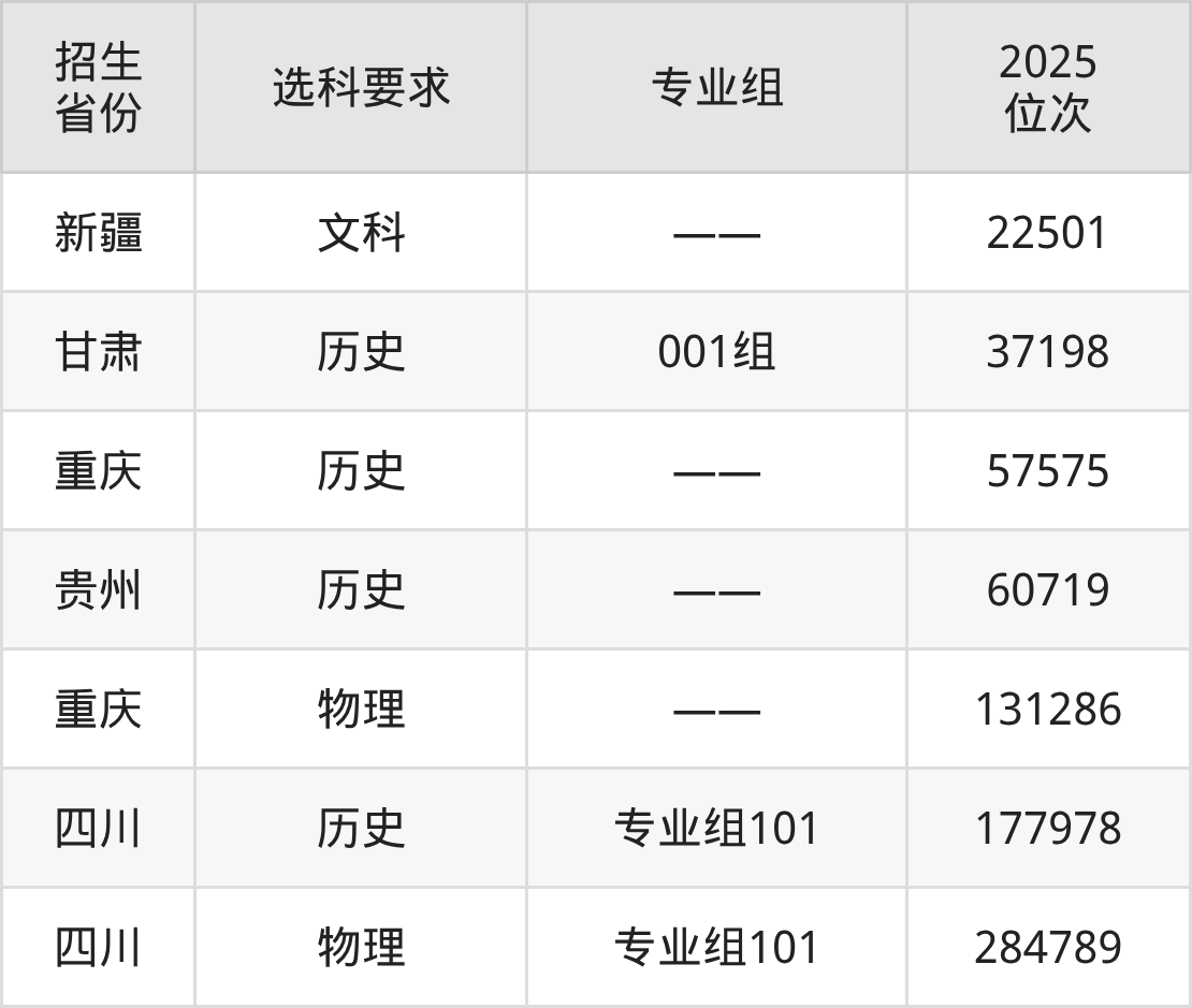 广安职业技术学院2025年在全国各省的位次差异较大,最高位次是22501位(新疆文科)、最低位次是284789位(四川物理类)。各省具体位次请看下图: