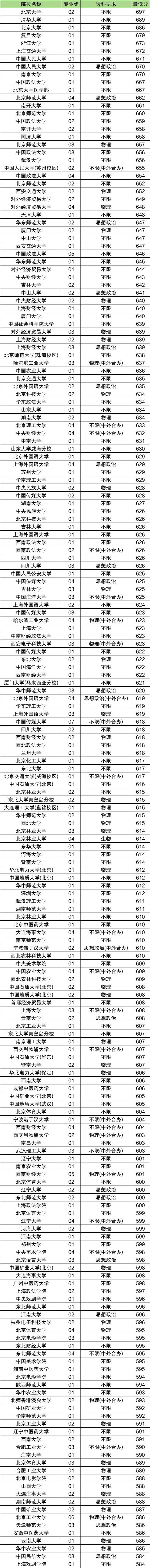 篇幅有限,下方为大家展示物化政可报考的本科大学录取分数线排名前200强名单: