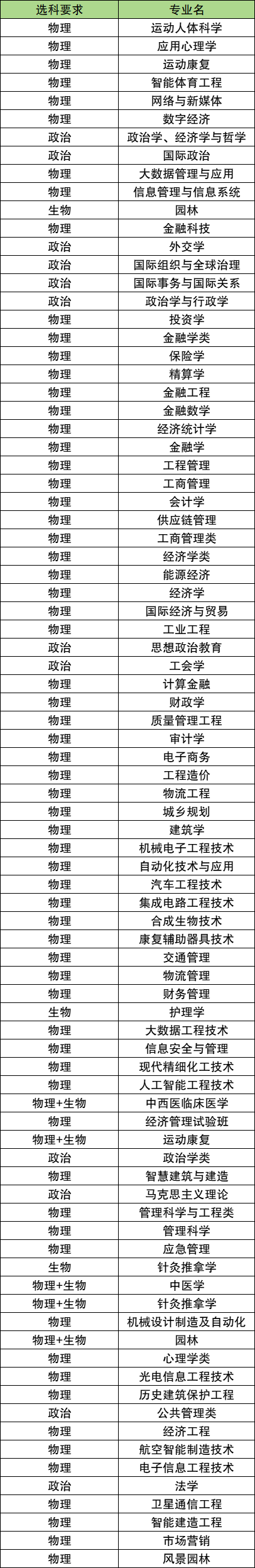 要求选科物理的专业:大数据管理与应用、数字经济、信息管理与信息系统、经济统计学、金融工程、金融数学、工程造价、国际经济与贸易等;