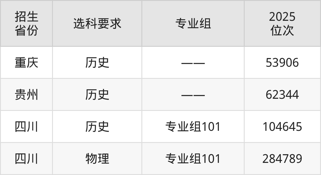 四川商务职业学院2025年在全国各省的位次差异较大,最高位次是53906位(重庆历史类)、最低位次是284789位(四川物理类)。各省具体位次请看下图: