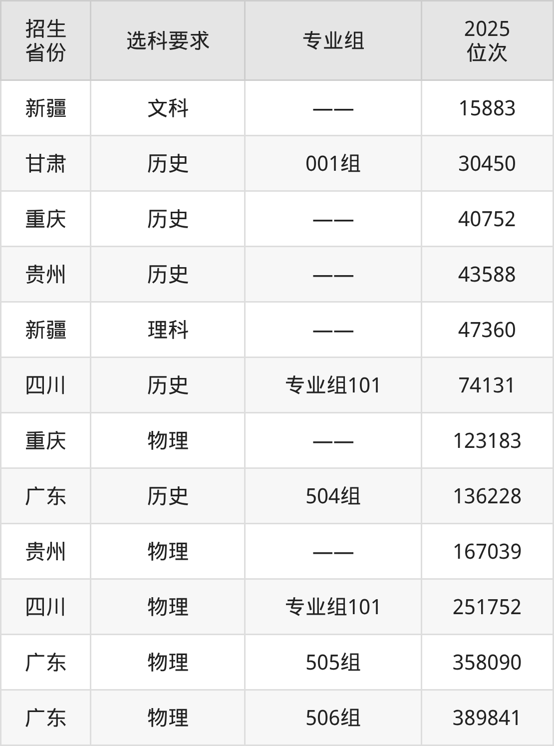 四川卫生康复职业学院2025年在全国各省的位次差异较大,最高位次是15883位(新疆文科)、最低位次是389841位(广东物理类)。各省具体位次请看下图: