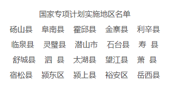 2026安徽国家专项计划实施区域涵盖20个县(市、区),包括砀山县、阜南县、霍邱县、金寨县、利辛县等,具体实施区域名单如下: