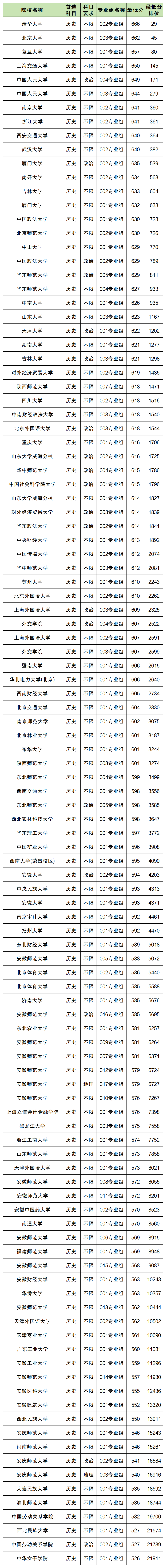 2025年各大学国家专项计划在安徽历史类的录取分数线在526分-666分之间,录取分数最高的清华大学002专业组,最低分为666分;最低录取分数超过640分的还有: