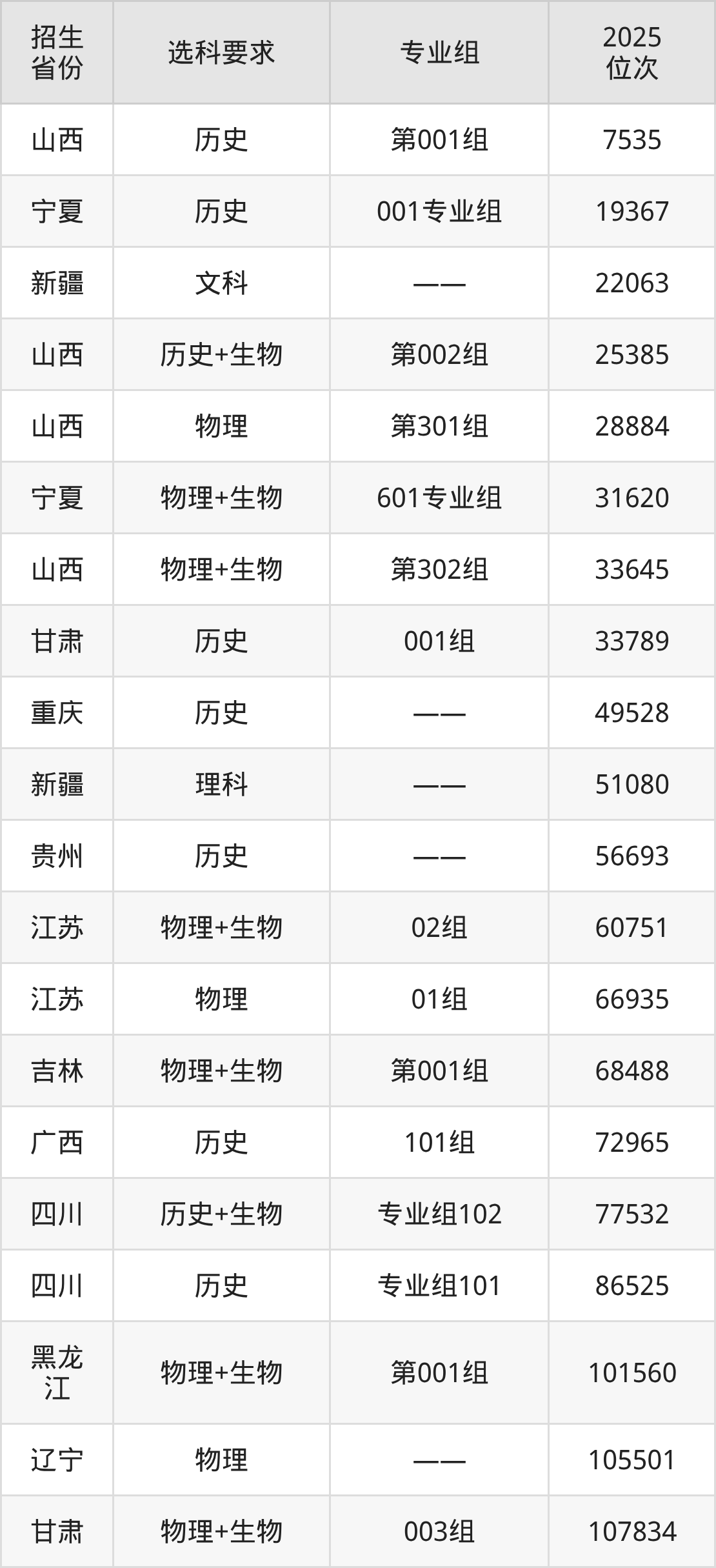 泸州职业技术学院2025年在全国各省的位次差异较大,最高位次是7535位(山西历史类)、最低位次是395287位(山东)。各省具体位次请看下图: