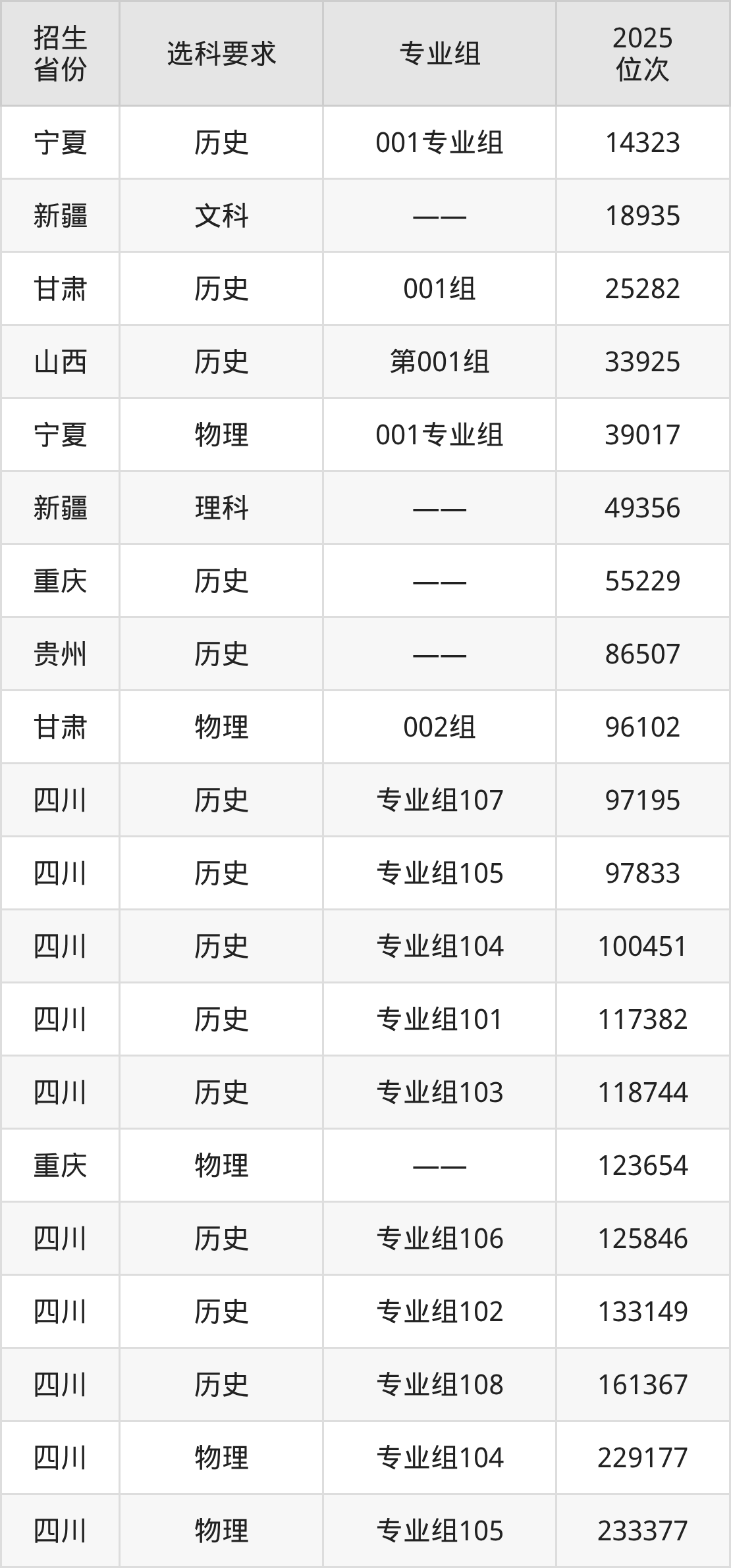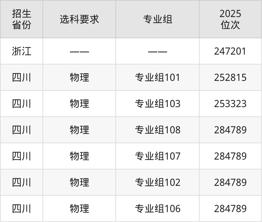 南充职业技术学院2025年在全国各省的位次差异较大,最高位次是14323位(宁夏历史类)、最低位次是284789位(四川物理类)。各省具体位次请看下图: