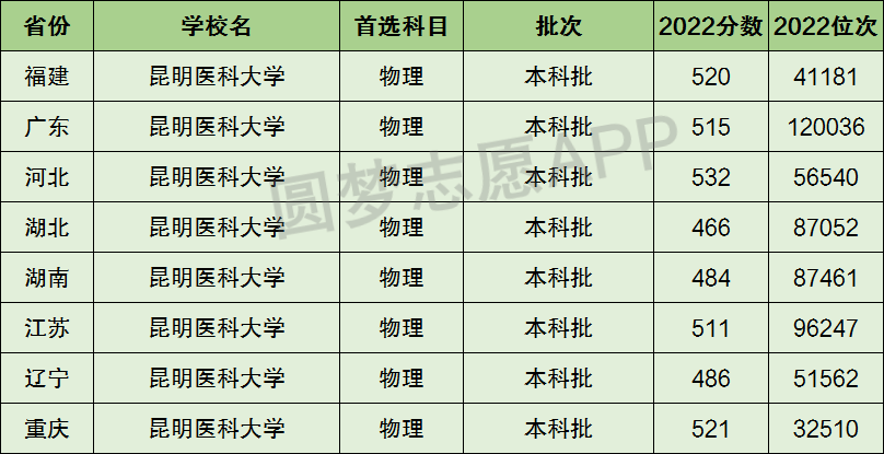 下面圆梦志愿将为大家展示昆明医科大学2022年在全国各省市的最低分数线和位次,大家可以在了解昆明医科大学在全国各省详细招生批次的同时,也顺便看看昆明医科大学的招生录取分数线是多少!