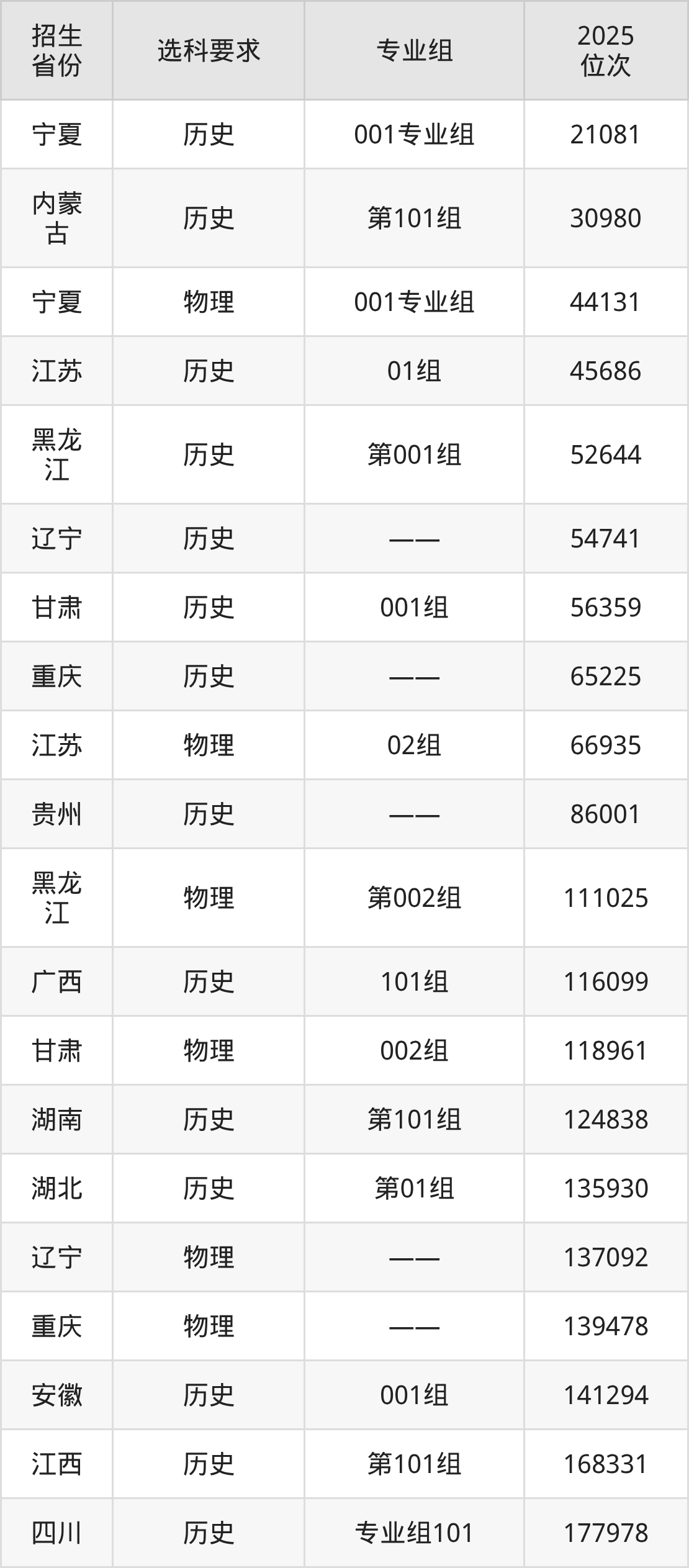 资阳环境科技职业学院2025年在全国各省的位次差异较大,最高位次是21081位(宁夏历史类)、最低位次是678312位(山东)。各省具体位次请看下图: