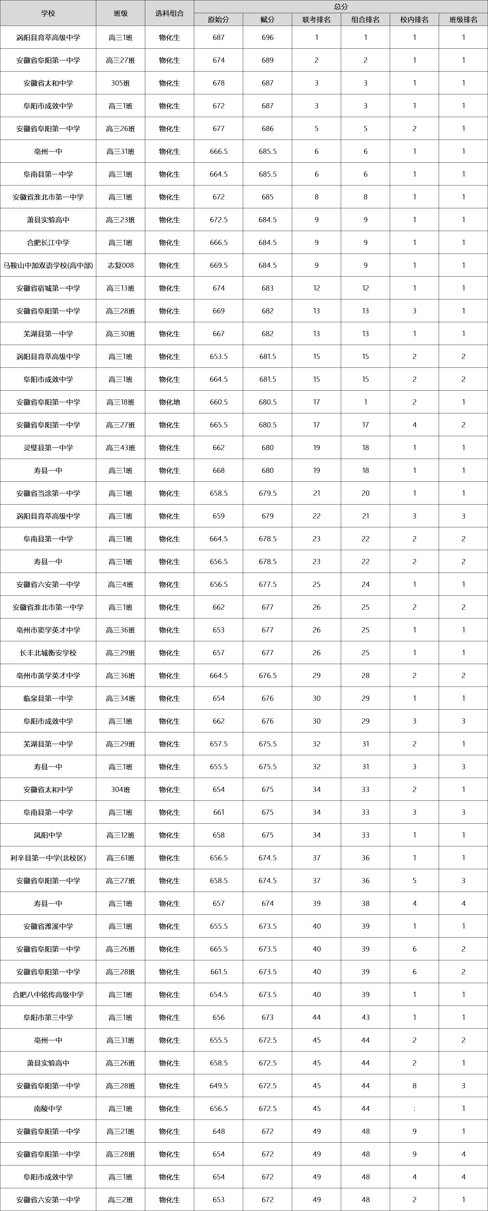 下面是2026皖北协作区高三联考成绩排名表: