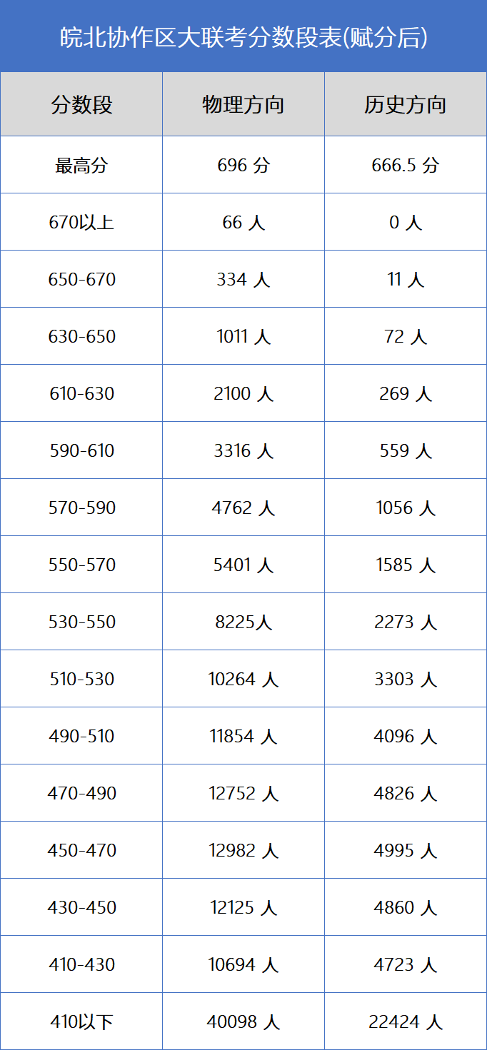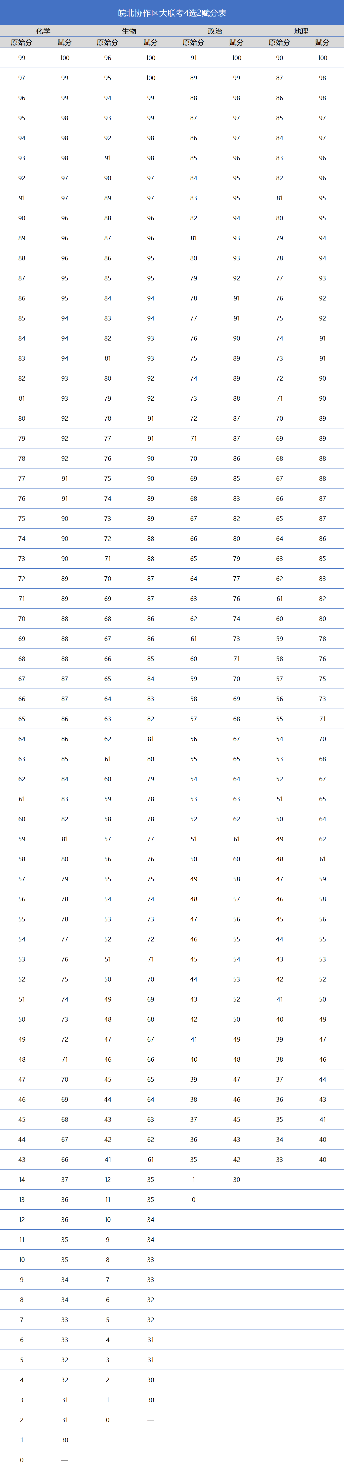 下面附上2025皖北协作区高三联考赋分表,供查阅: