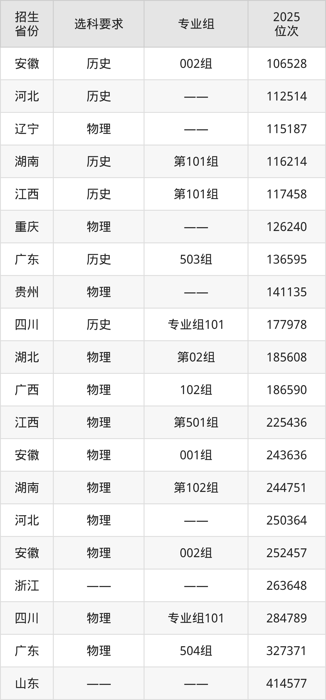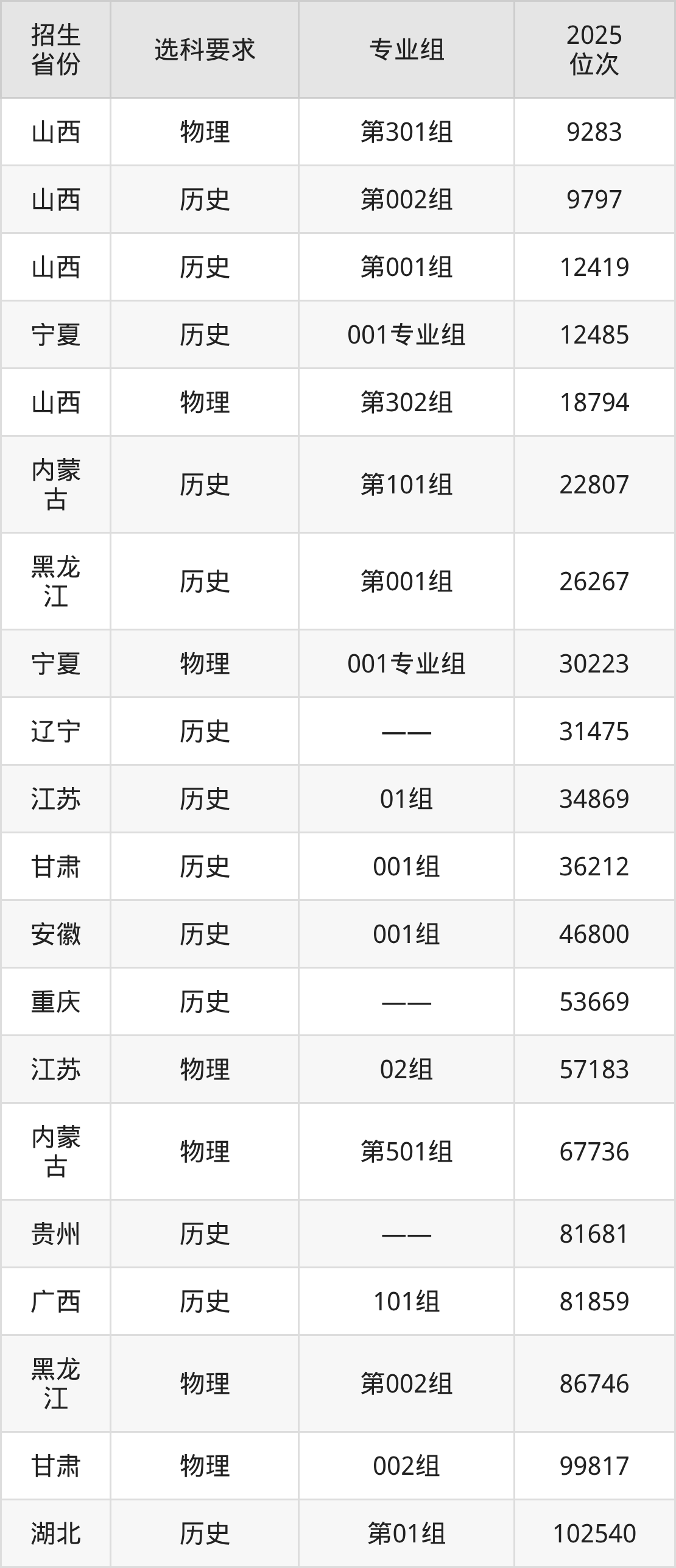 广元中核职业技术学院2025年在全国各省的位次差异较大,最高位次是9283位(山西物理类)、最低位次是414577位(山东)。各省具体位次请看下图:
