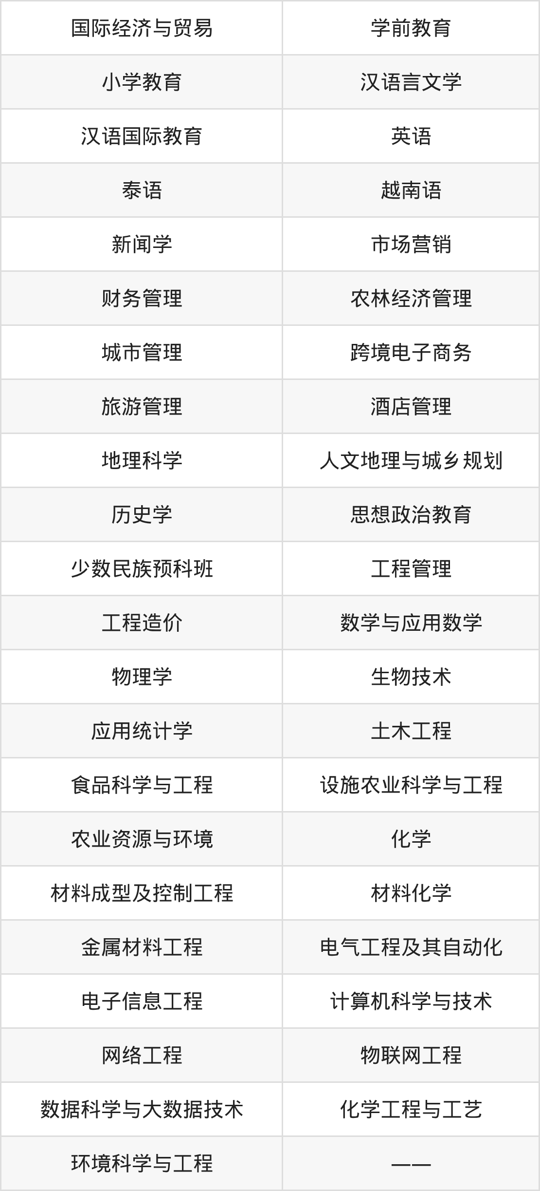 根据2025年广西高考招生计划可知,百色学院招生专业包含国际经济与贸易、学前教育、小学教育等,完整版名单如下。