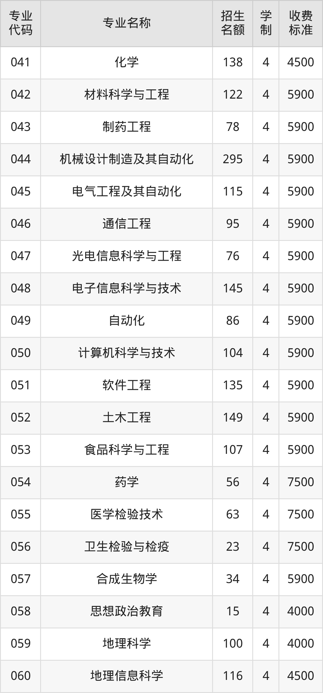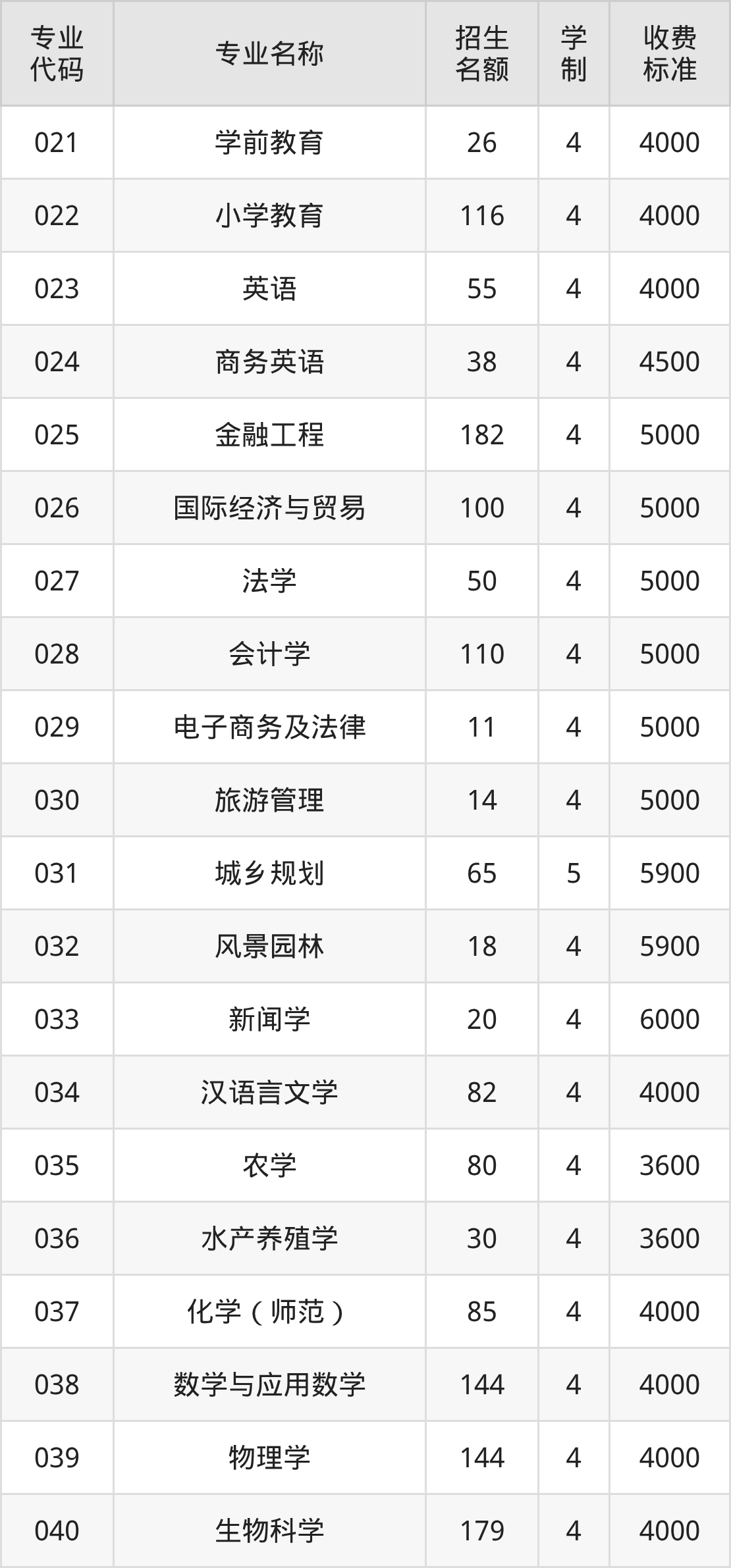 | 专业 代码 | 专业名称 | 招生 名额 | 学 制 | 收费 标准 |