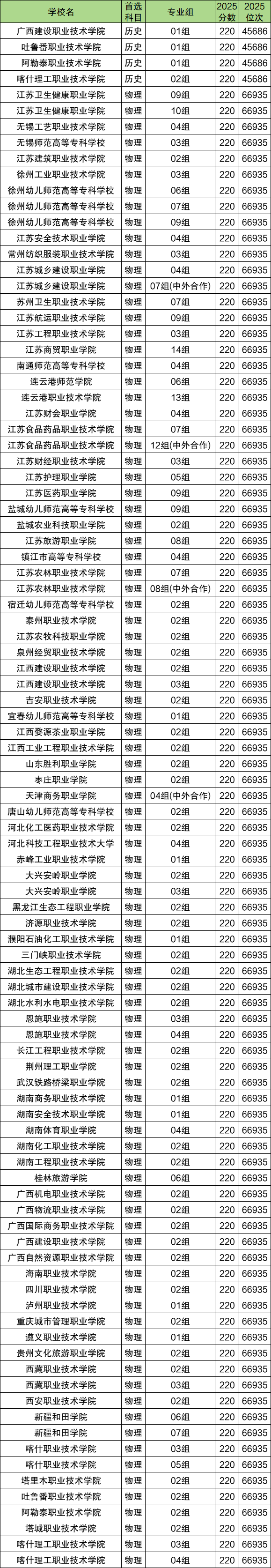 以上这些公办专科学校2025年在江苏省最低录取分数线均为220分,刚好为江苏省专科批次线,因此江苏考生只需要压线就可以上公办大专。