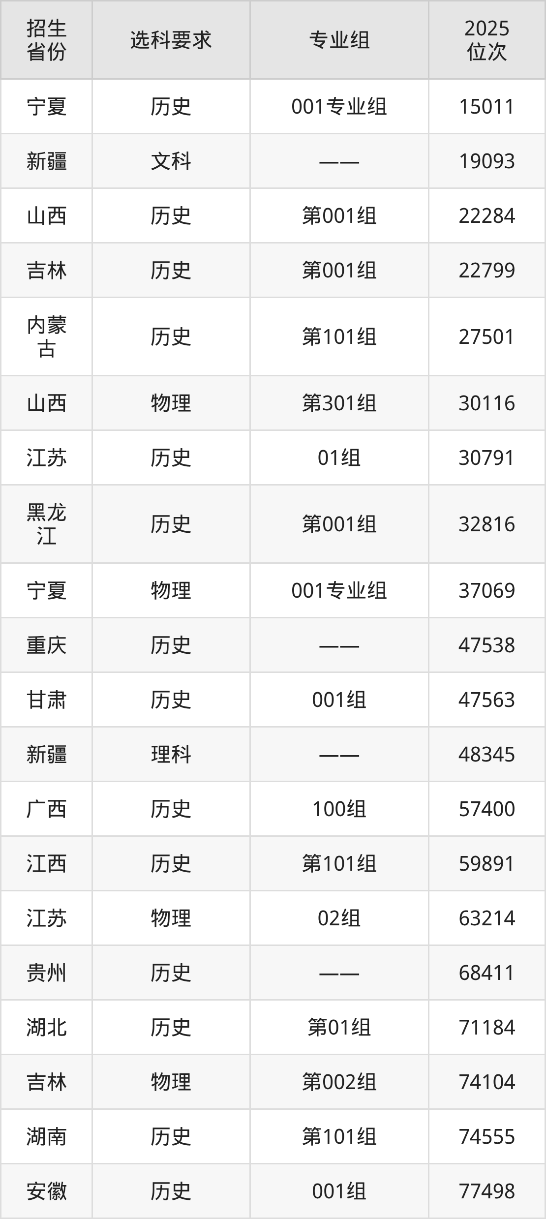 九江职业大学2025年在全国各省的位次差异较大,最高位次是15011位(宁夏历史类)、最低位次是419396位(山东)。各省具体位次请看下图: