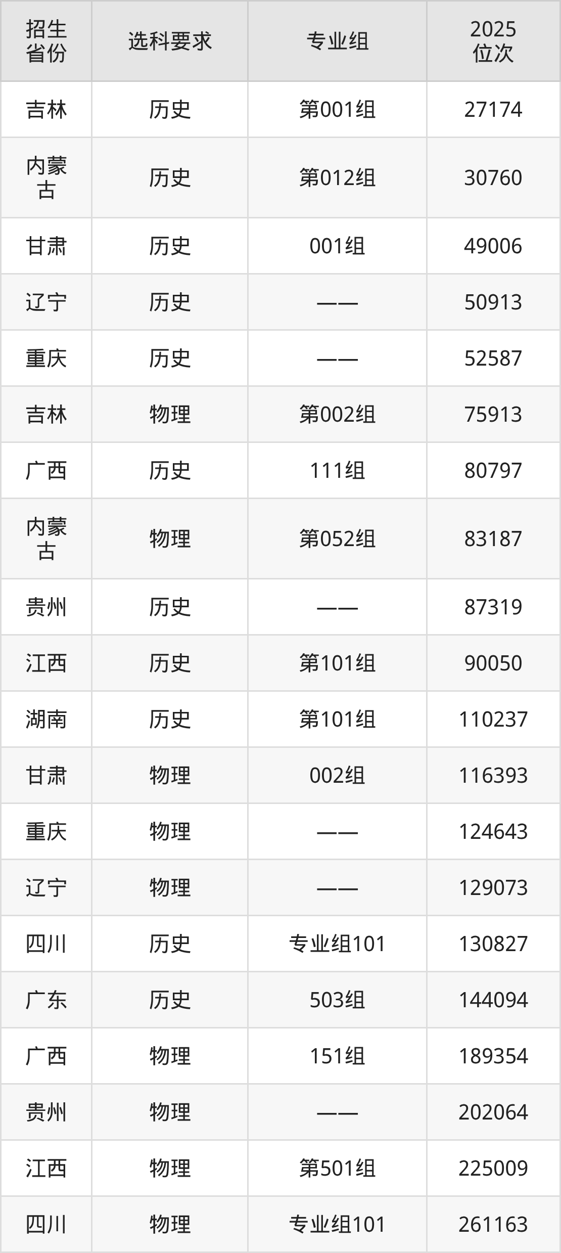 柳州城市职业学院2025年在全国各省的位次差异较大,最高位次是27174位(吉林历史类)、最低位次是352914位(广东物理类)。各省具体位次请看下图: