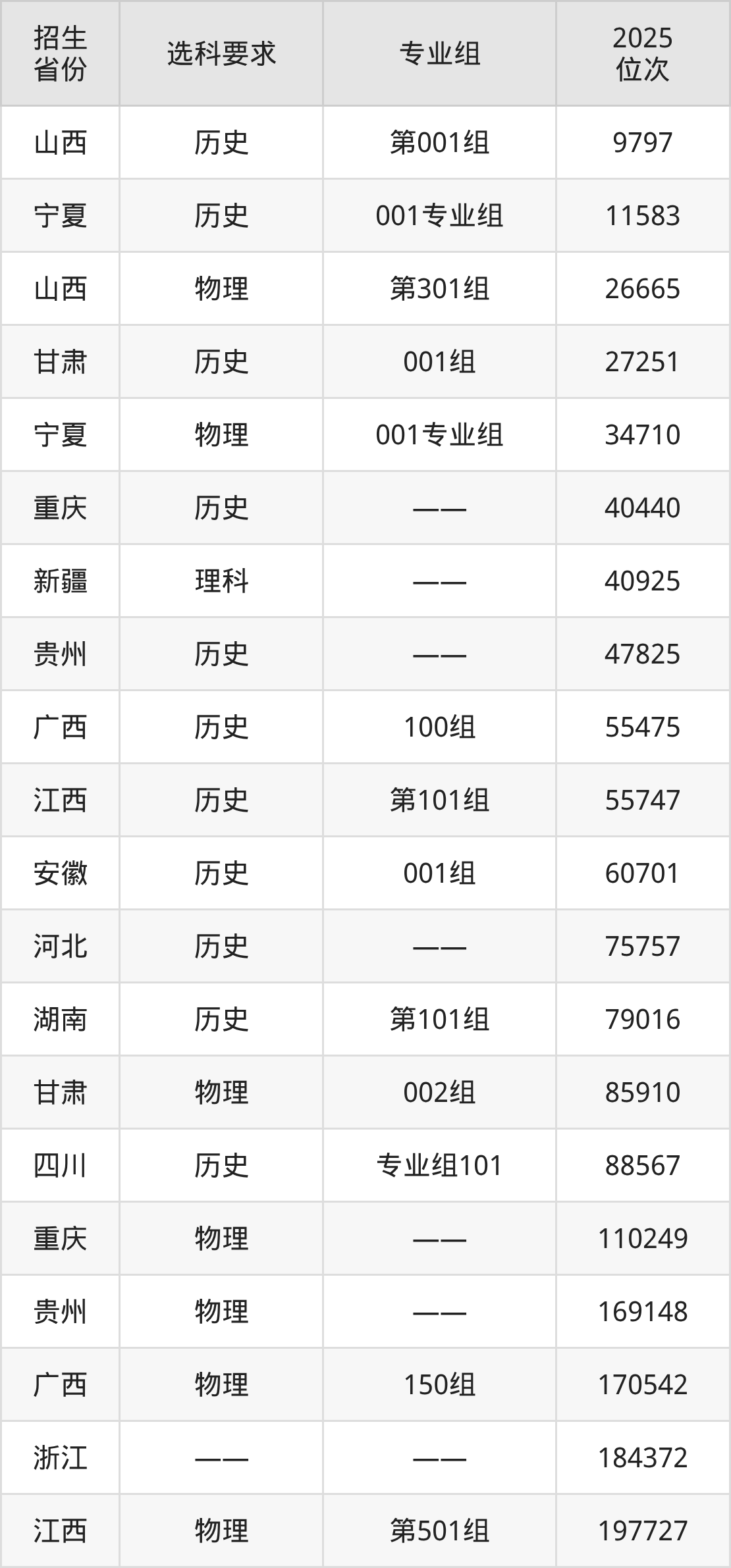 洛阳职业技术学院2025年在全国各省的位次差异较大,最高位次是9797位(山西历史类)、最低位次是364270位(山东)。各省具体位次请看下图: