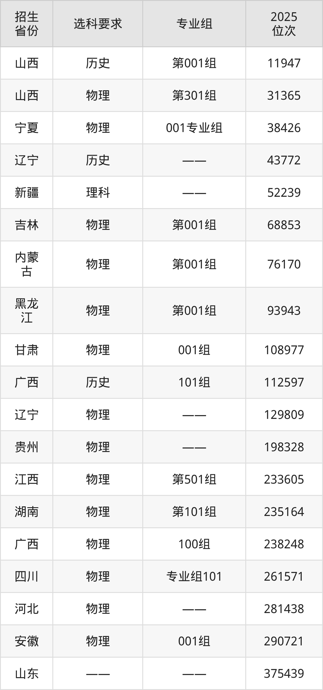 辽宁装备制造职业技术学院2025年在全国各省的位次差异较大,最高位次是11947位(山西历史类)、最低位次是375439位(山东)。各省具体位次请看下图: