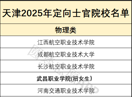 最新一年招生计划显示,定向士官在天津市招生院校共计5所,不同院校招生人数、专业、类型等都有差异,为方便2026届考生报考,下面将详细列举这些学校的名单,供查阅: