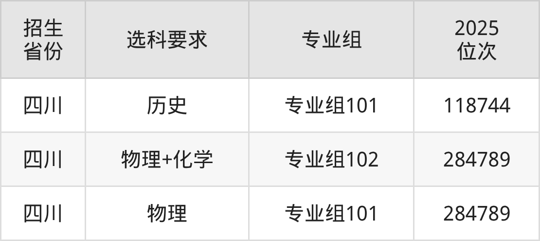 眉山职业技术学院2025年的位次差异较大,最高位次是118744位(四川历史类)、最低位次是284789位(四川物理类)。具体位次请看下图: