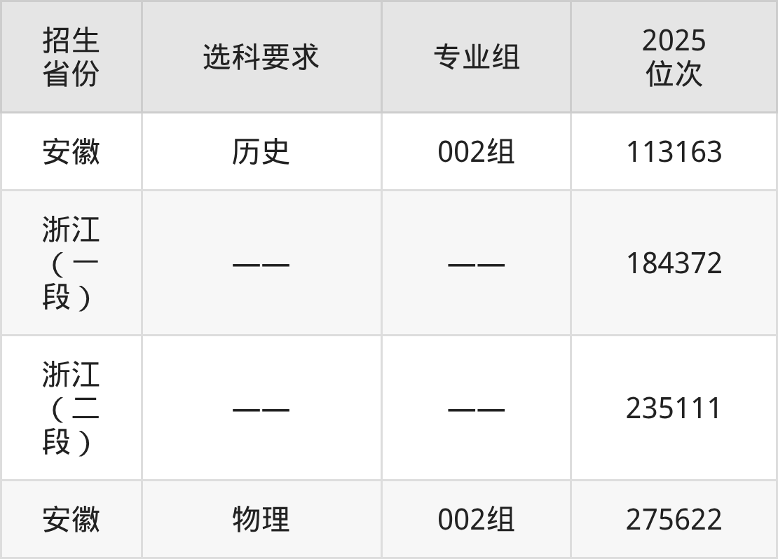黄山职业技术学院2025年在全国各省的位次差异较大,最高位次是113163位(安徽历史类)、最低位次是275622位(安徽物理类)。各省具体位次请看下图: