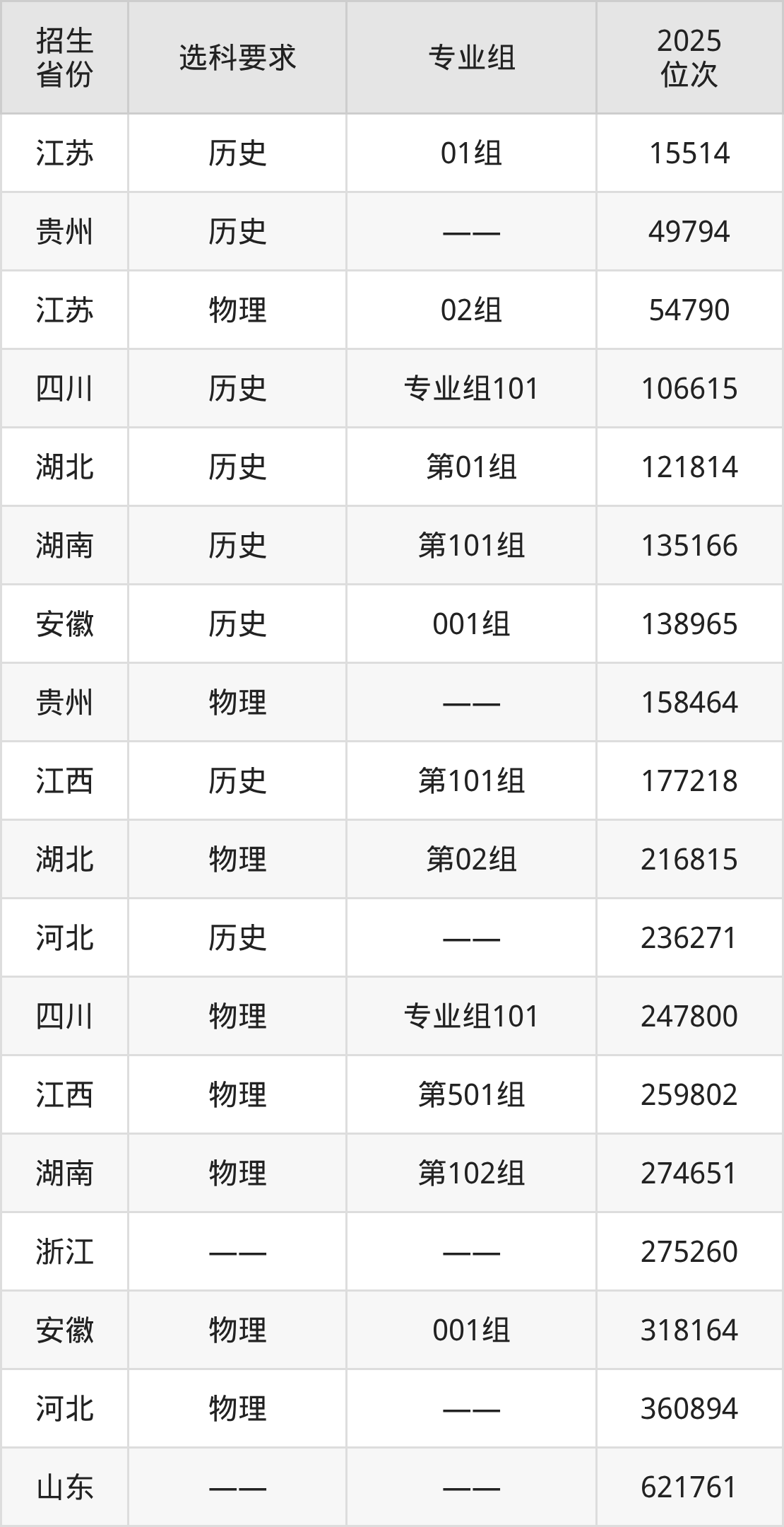 上海民远职业技术学院2025年在全国各省的位次差异较大,最高位次是15514位(江苏历史类)、最低位次是621761位(山东)。各省具体位次请看下图: