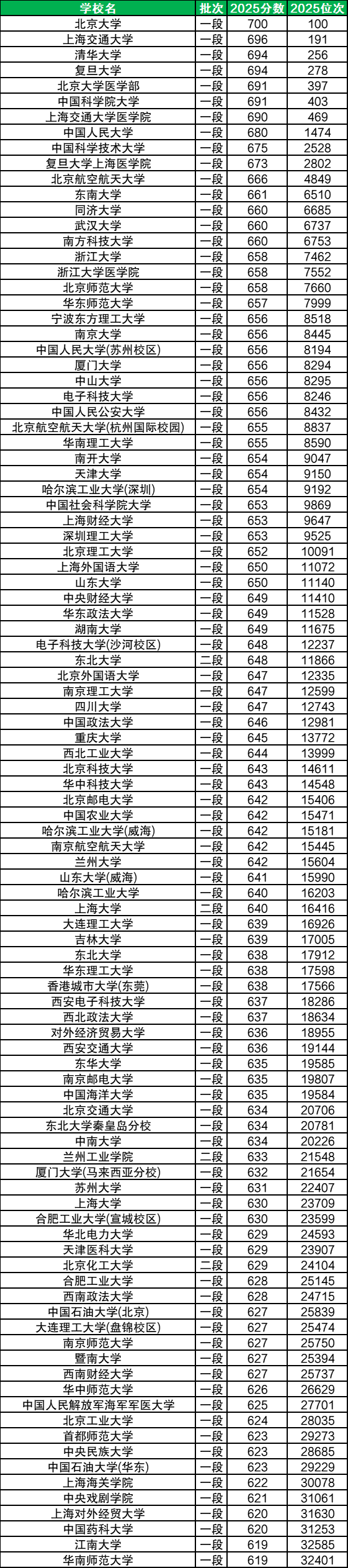 650分以上:冲击顶尖985高校,如浙江大学(2025年最低投档线658分)、复旦大学(694分)、上海交通大学(696分)。