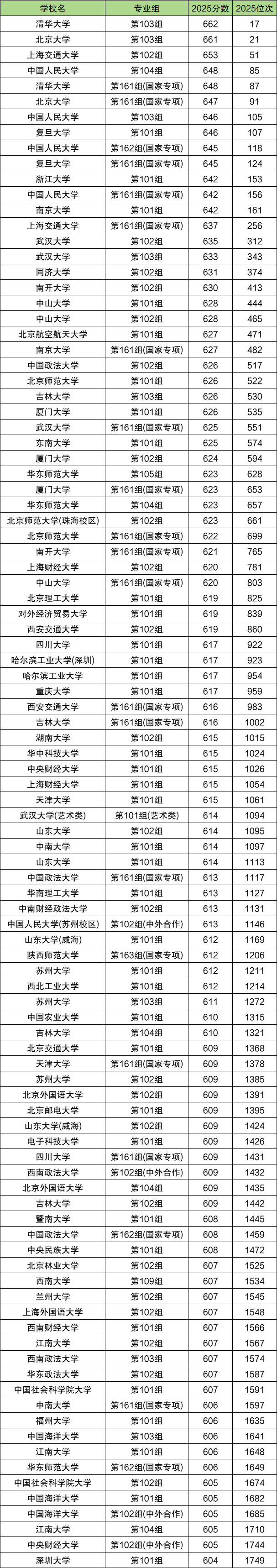 下面是2025年各大学在江西历史类录取分数线排名前100强名单: