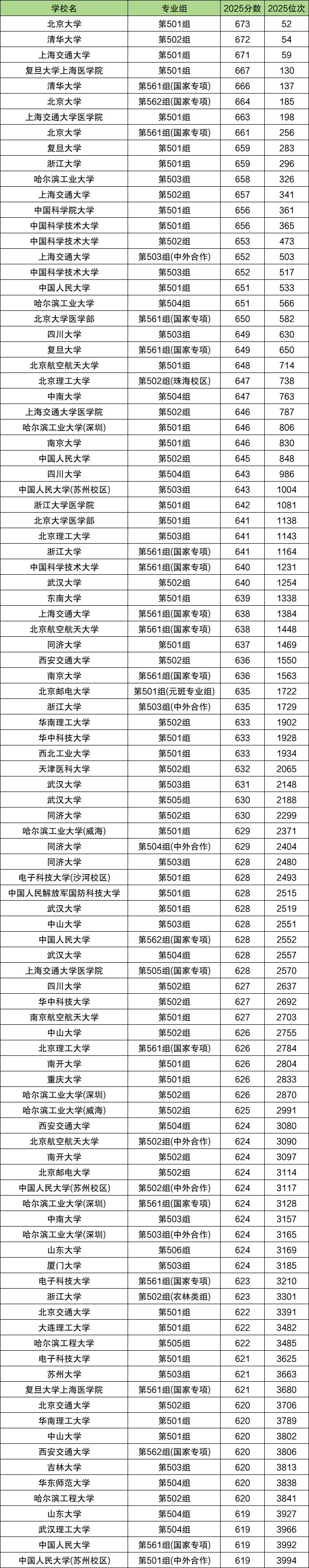 下面是2025年各大学在江西物理类录取分数线排名前100强名单: