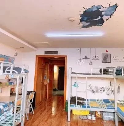 六人间,上床下桌 ,空调, 风扇 ,独卫 ,热水器,喷头,阳台 ,洗衣台, 洗衣机应有尽有;士官生楼虽然没独卫,但是洗澡间和卫生间是分开的。