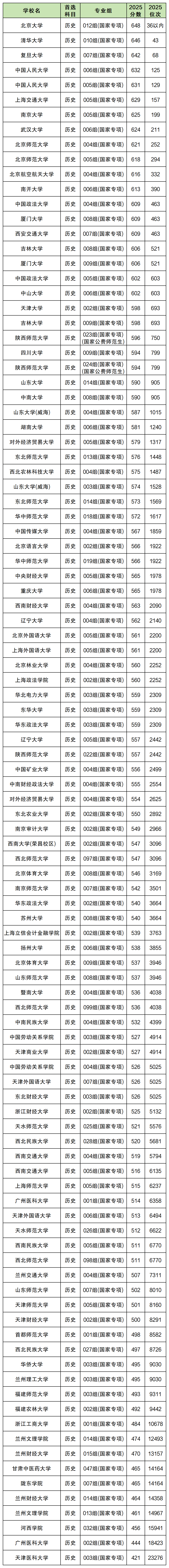 以下是2025年各大学国家专项计划在甘肃历史类的录取分数线一览表(需滑动查阅):