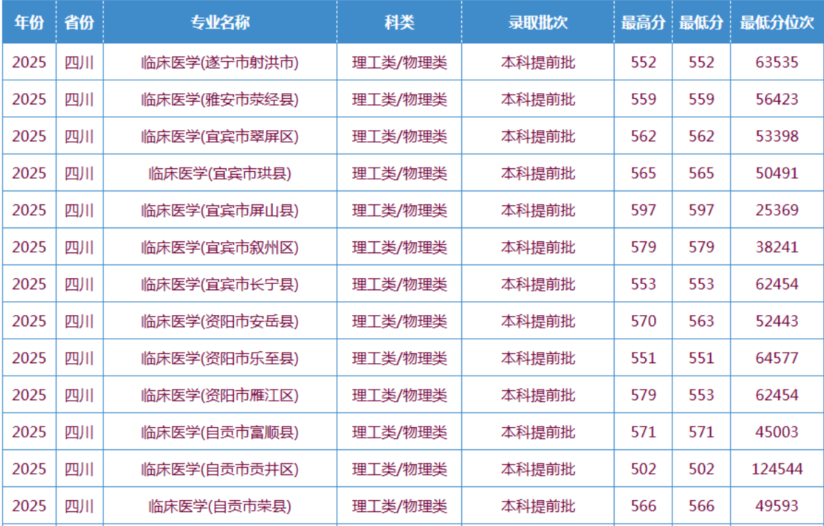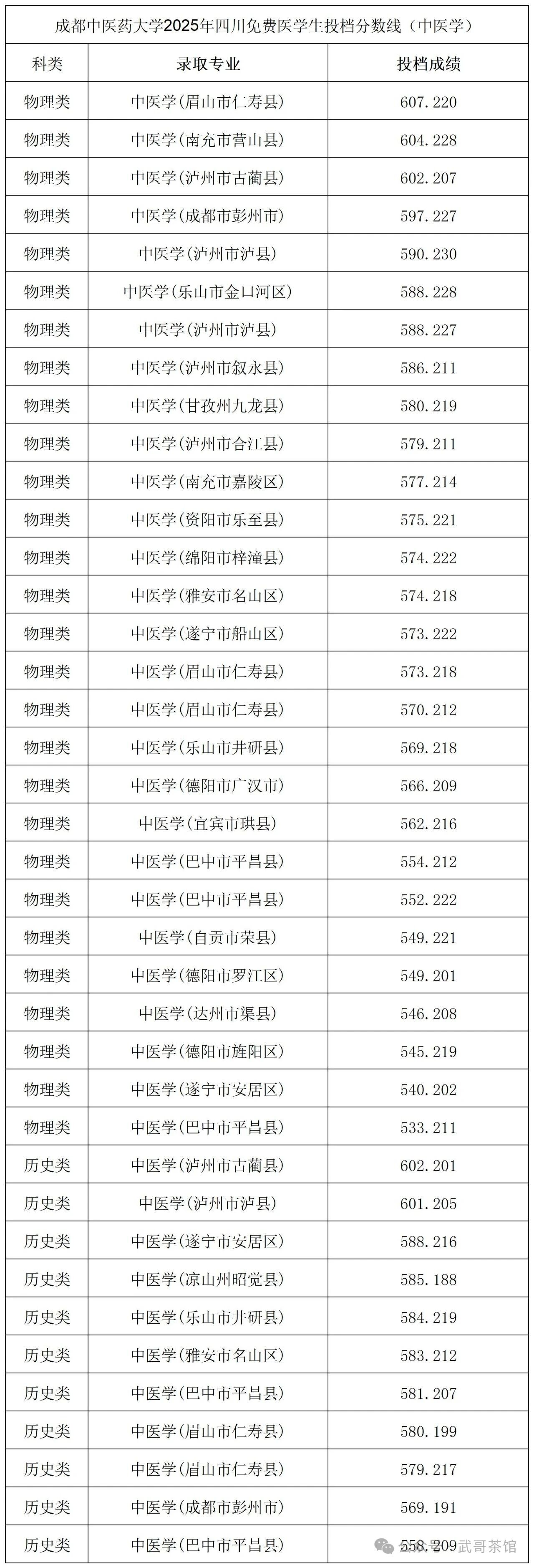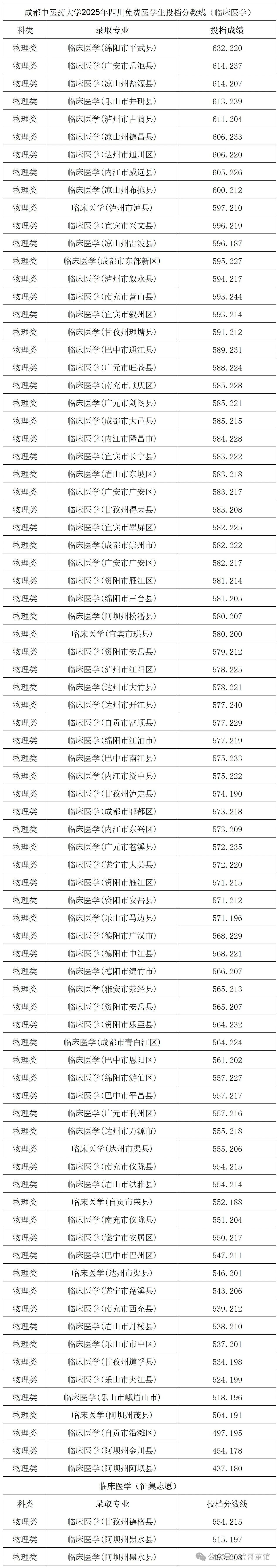 2、成都中医药大学2025年定向医学生录取分数线(滑动查阅)