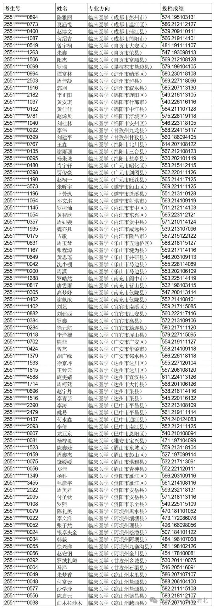 3、成都医学院2025年定向医学生录取分数线(滑动查阅)