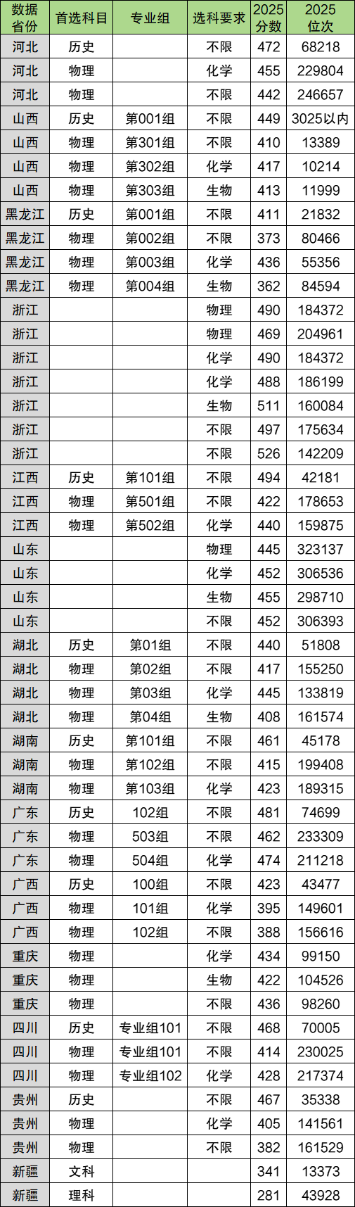 分数线受招生计划、报考热度及试卷难度影响,2025年录取数据如下。