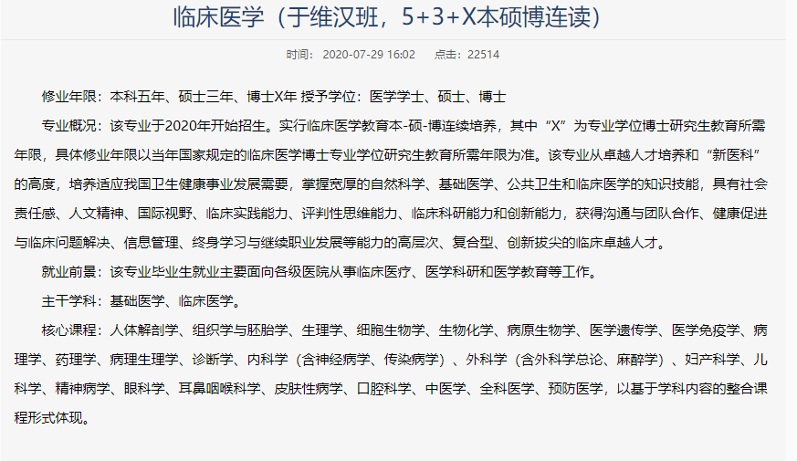 在这里重点讲一下临床医学(于维汉班),这个特色人才培养班级主要面向东北三省的考生招生,实行双导师制、本硕博贯通培养(区别于一般的8年制、9年制本博连读,该校的于维汉班修读年限以实际培养年限为准),研究生培养阶段与规范化培训同时进行,博士毕业后基本就能进入沈阳、大连甚至北京、上海等一线城市的三甲医院工作。