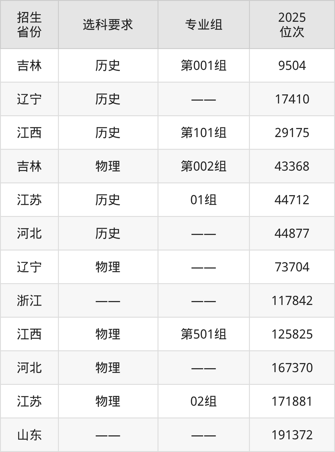 河北经贸大学经济管理学院2025年在全国各省的位次差异较大,最高位次是9504位(吉林历史类)、最低位次是191372位(山东)。各省具体位次请看下图: