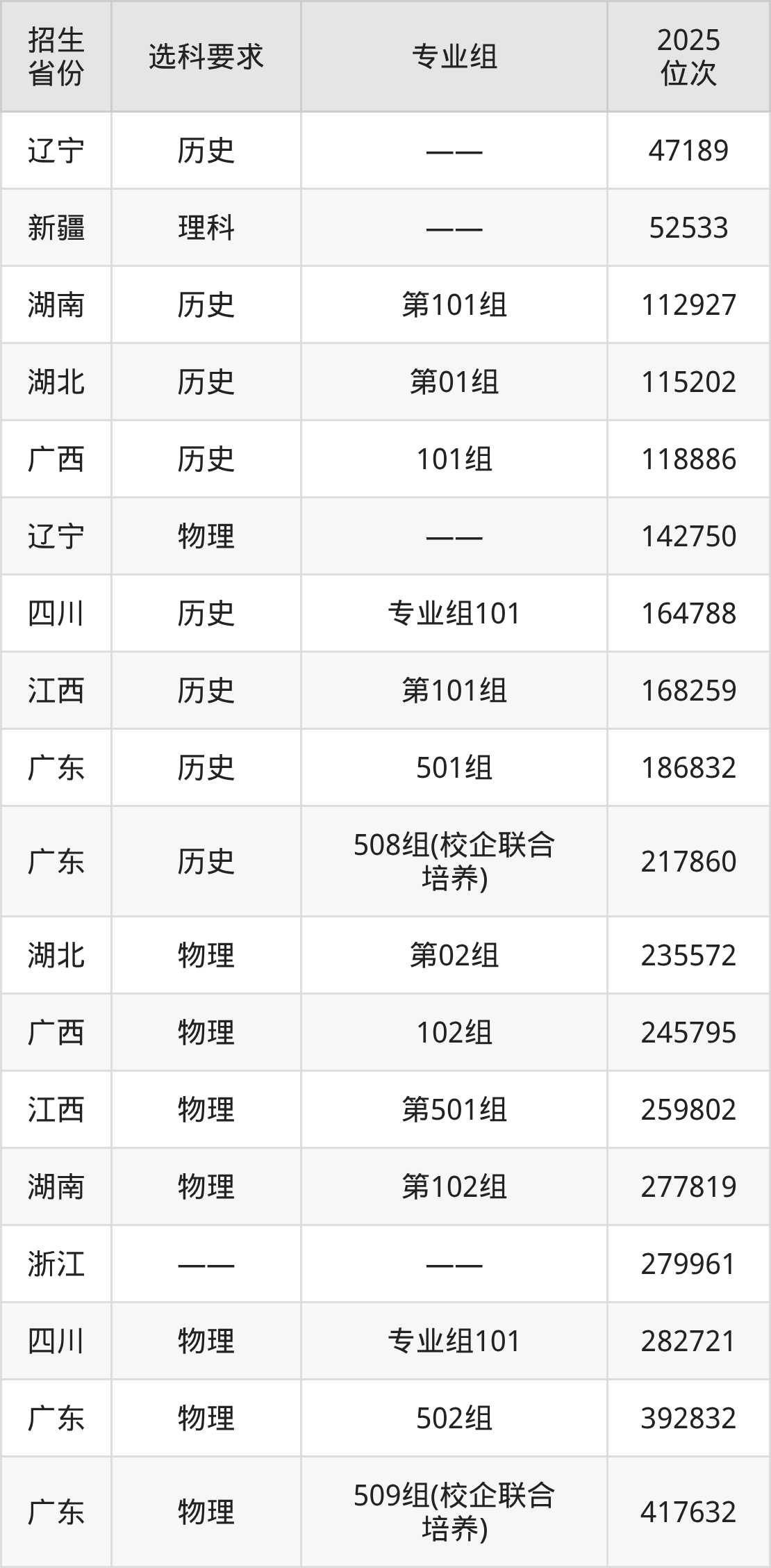 私立华联学院2025年在全国各省的位次差异较大,最高位次是47189位(辽宁历史类)、最低位次是417632位(广东物理类)。各省具体位次请看下图: