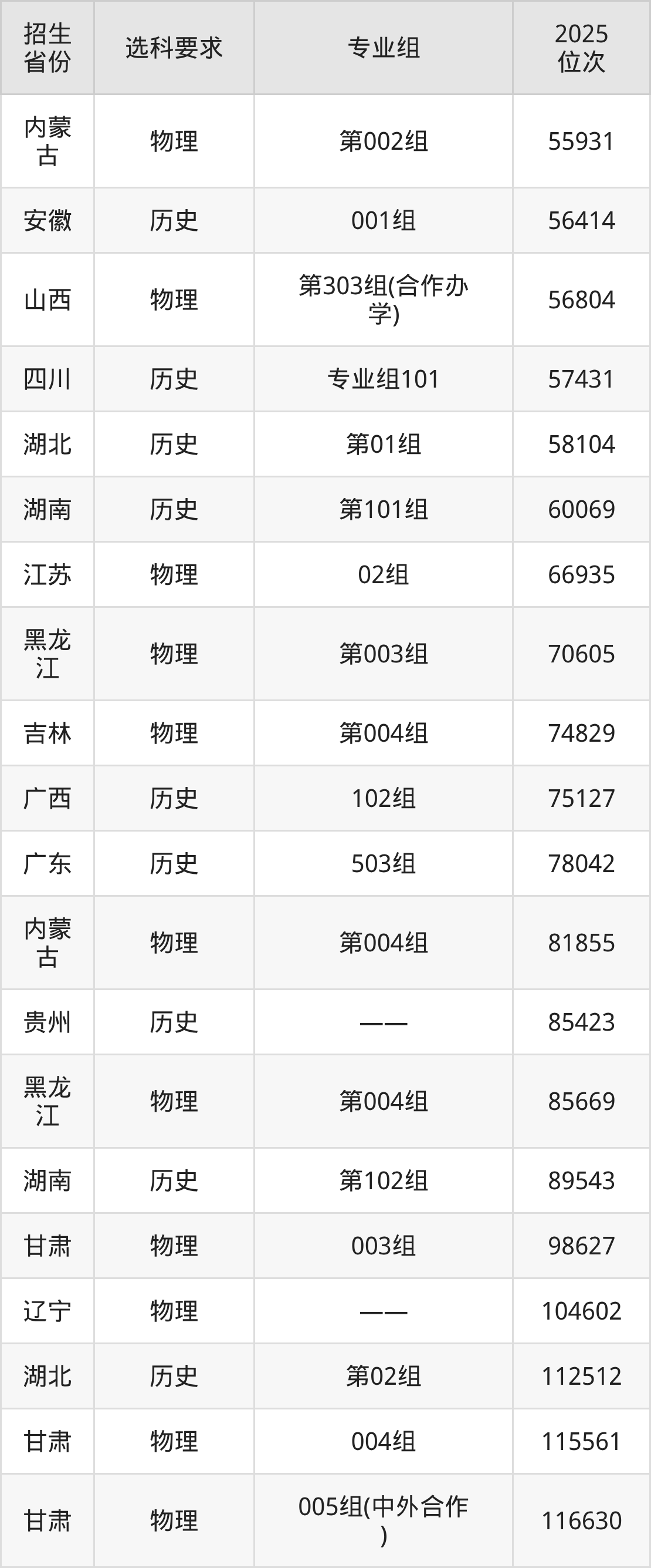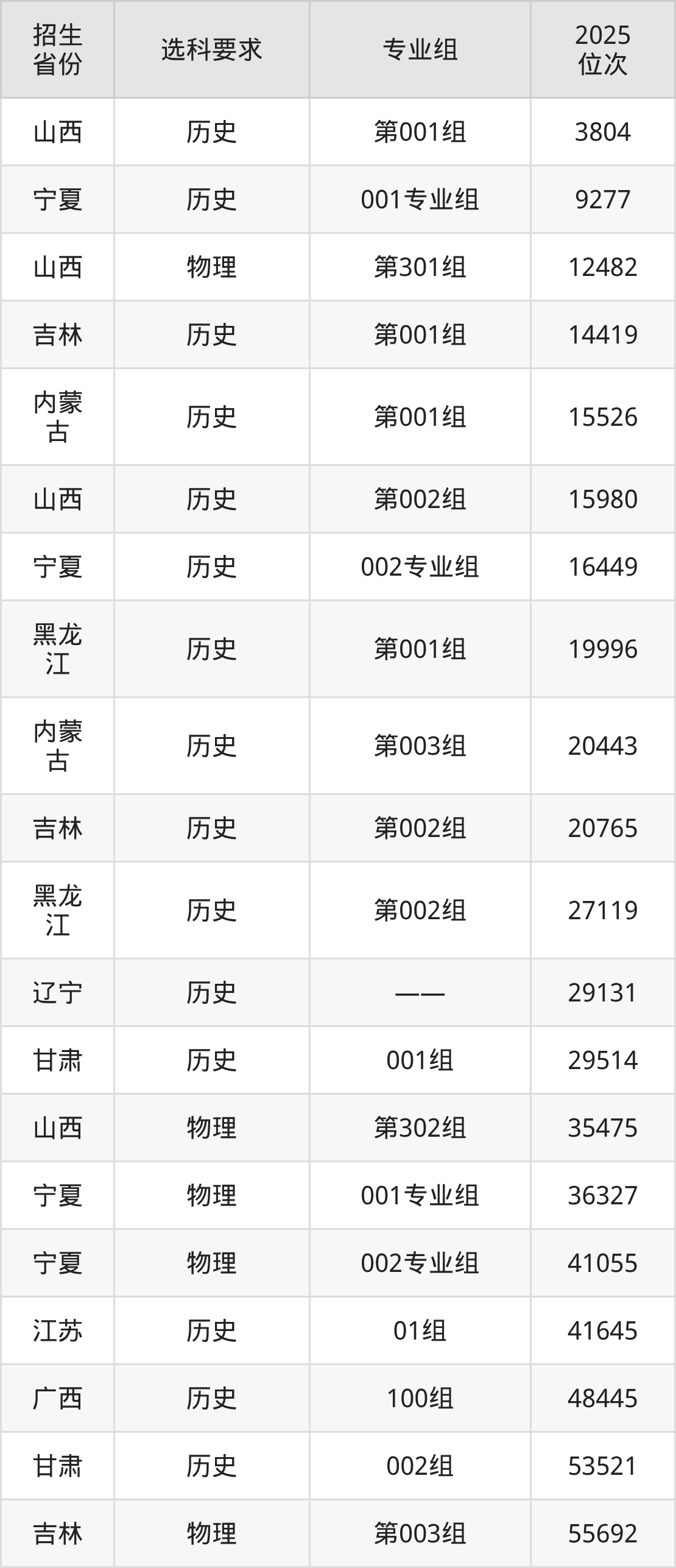 枣庄职业学院2025年在全国各省的位次差异较大,最高位次是3804位(山西历史类)、最低位次是585356位(山东)。各省具体位次请看下图: