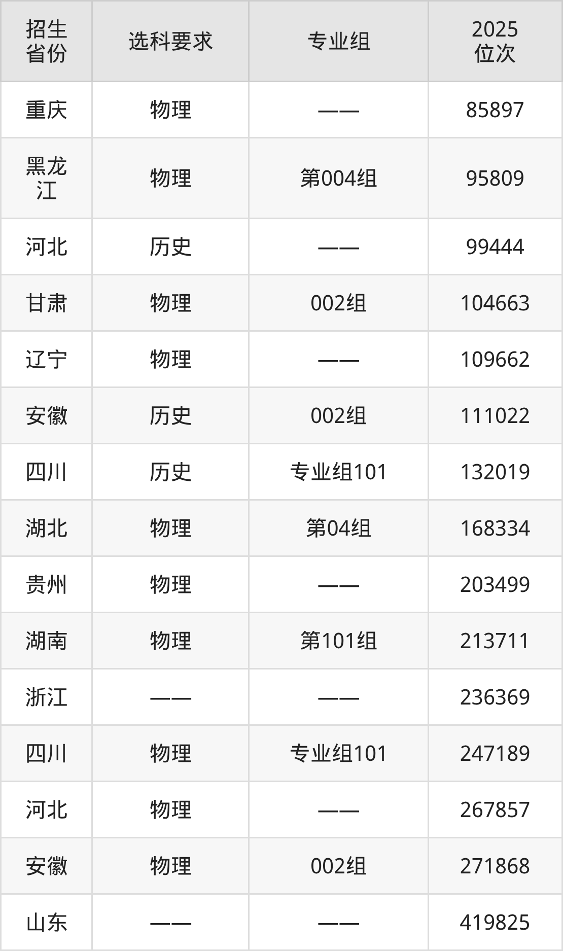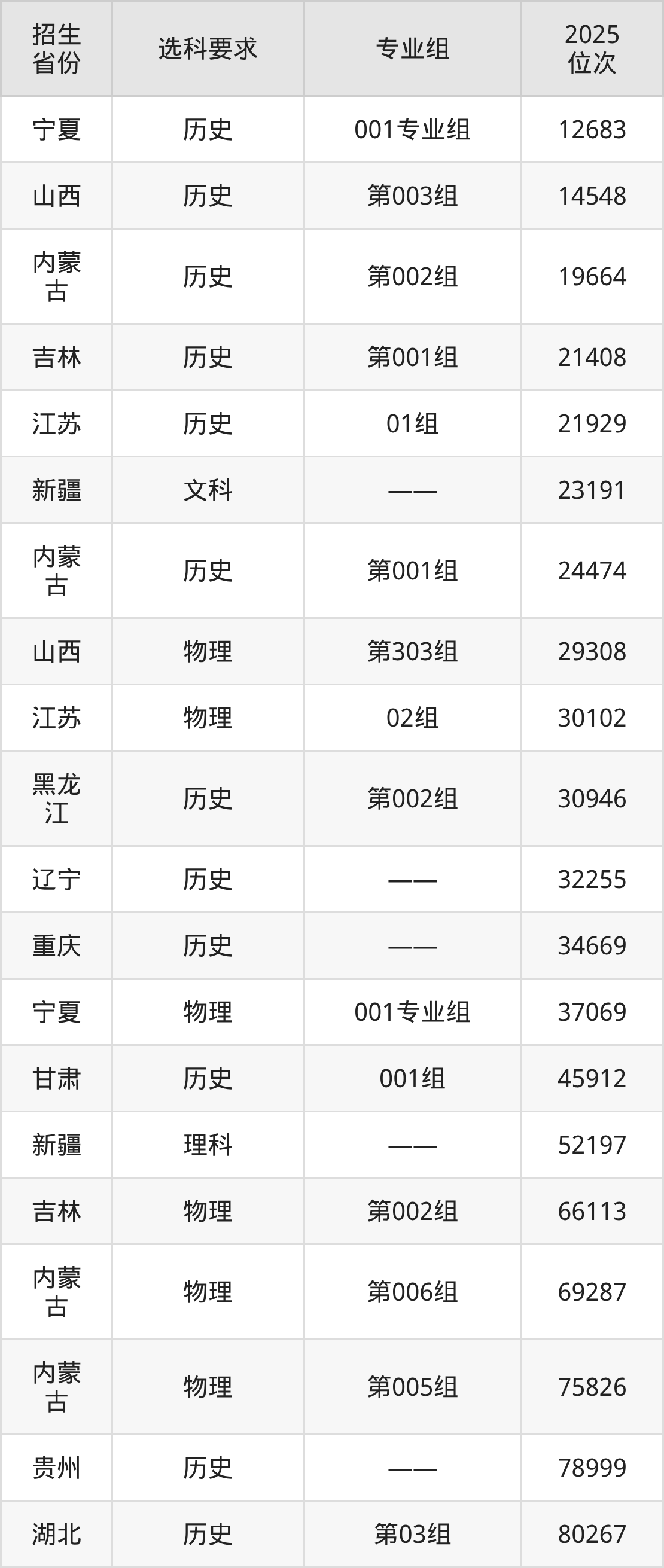天津海运职业学院2025年在全国各省的位次差异较大,最高位次是12683位(宁夏历史类)、最低位次是419825位(山东)。各省具体位次请看下图: