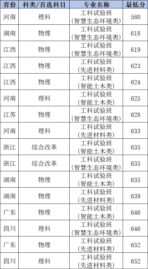 | 2 | 工科试验班(先进材料类) |