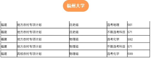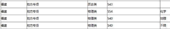 注:福建省教育考试院暂未统一公布地方专项计划2025年分数线,本站正根据各校录取情况持续收集中,以下是部分院校在福建省的地方专项计划录取分数: