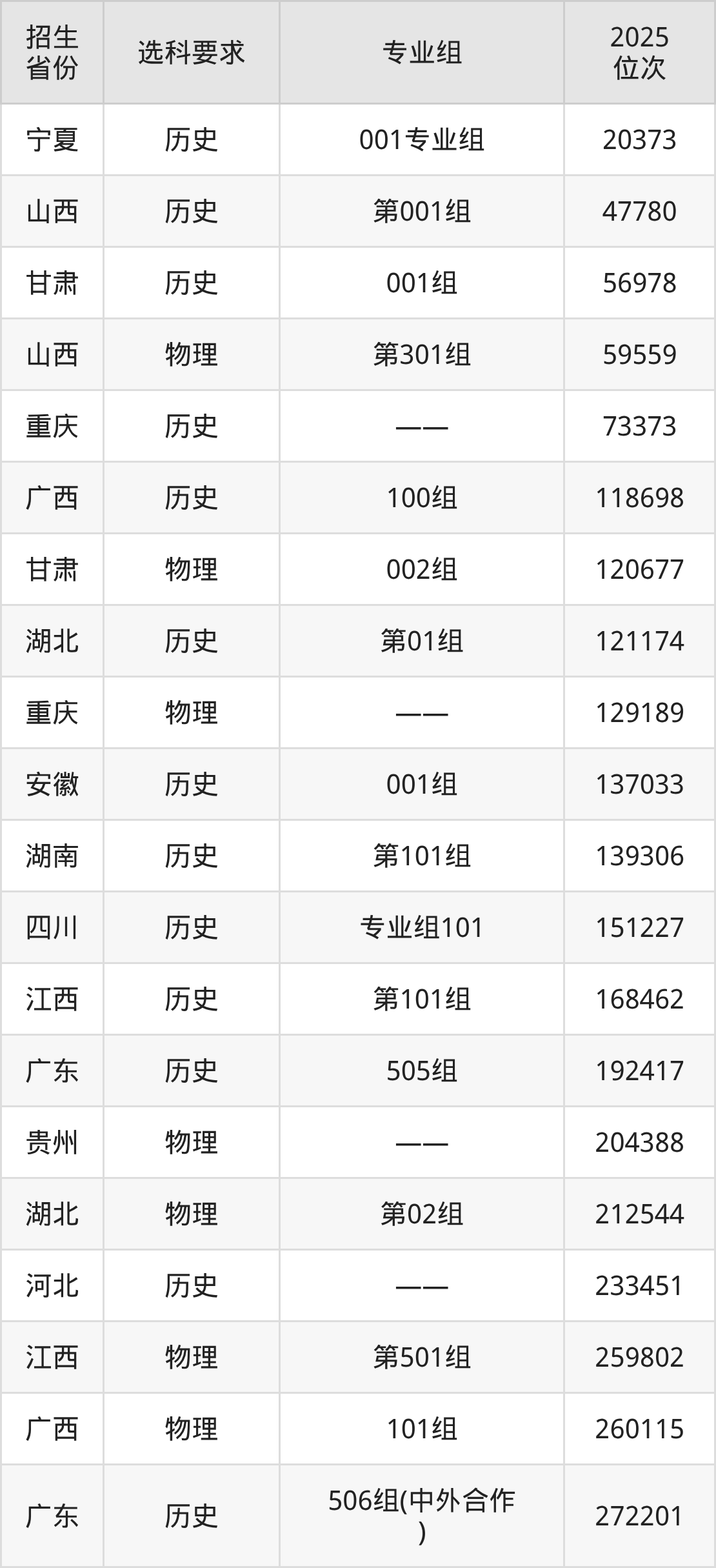 江西枫林涉外经贸职业学院2025年在全国各省的位次差异较大,最高位次是20373位(宁夏历史类)、最低位次是678963位(山东)。各省具体位次请看下图: