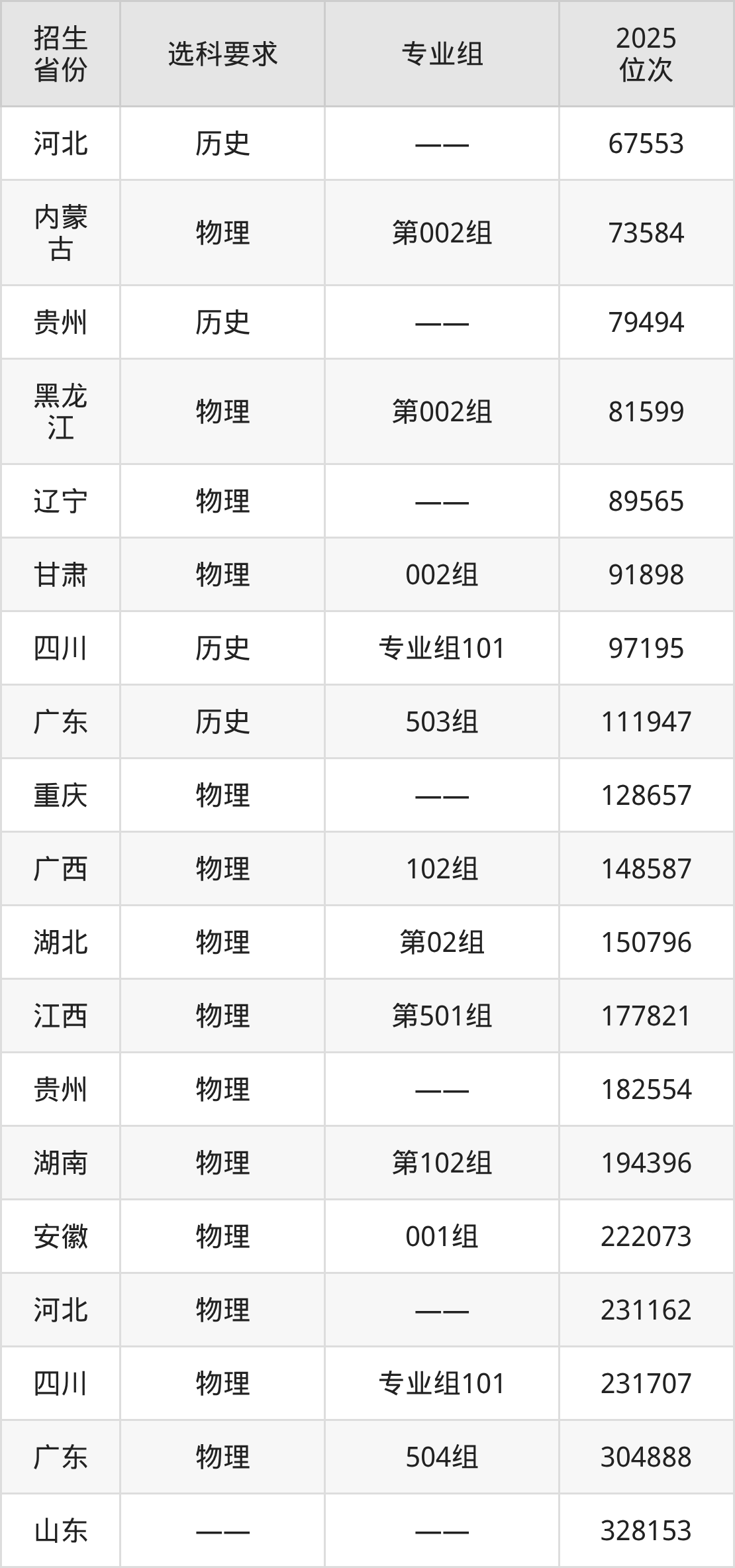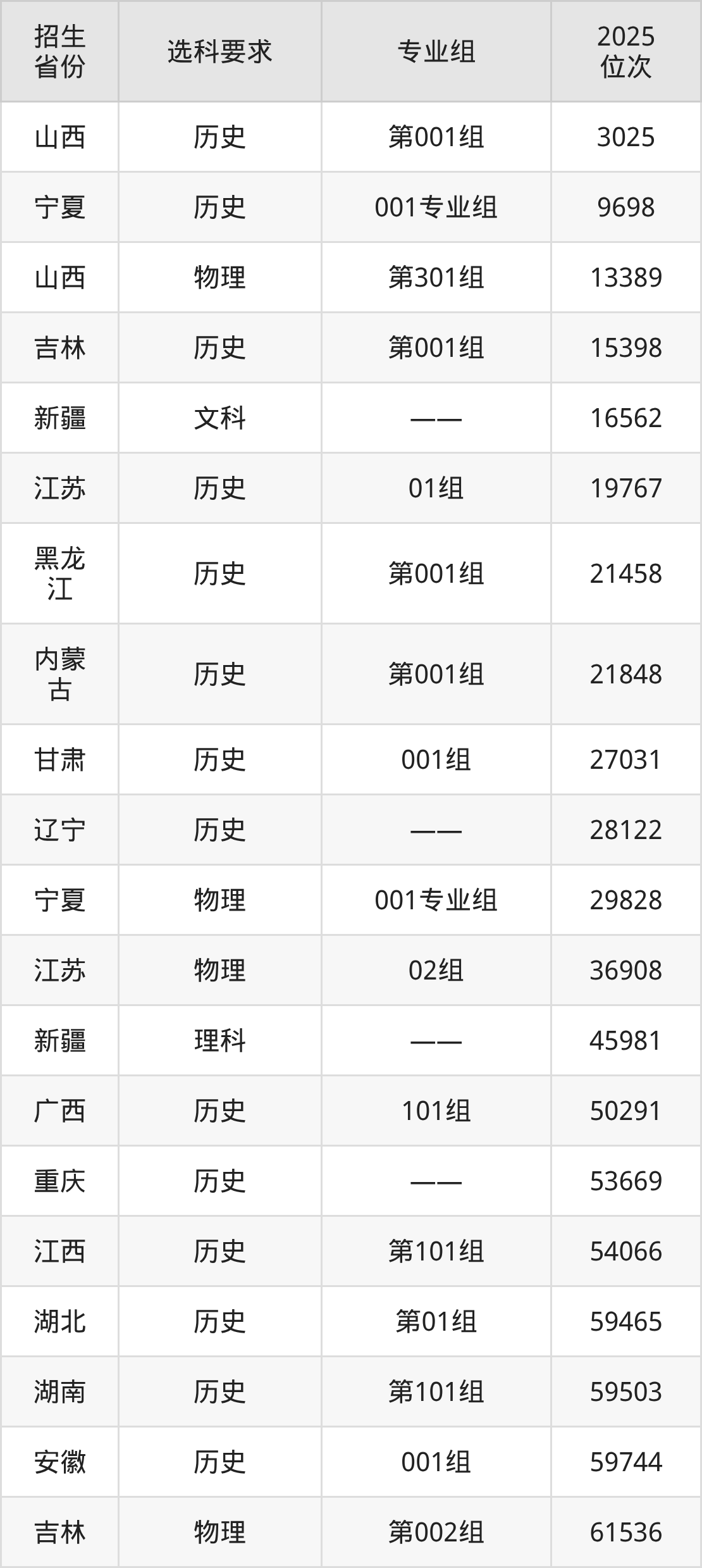 重庆水利电力职业技术学院2025年在全国各省的位次差异较大,最高位次是3025位(山西历史类)、最低位次是328153位(山东)。各省具体位次请看下图: