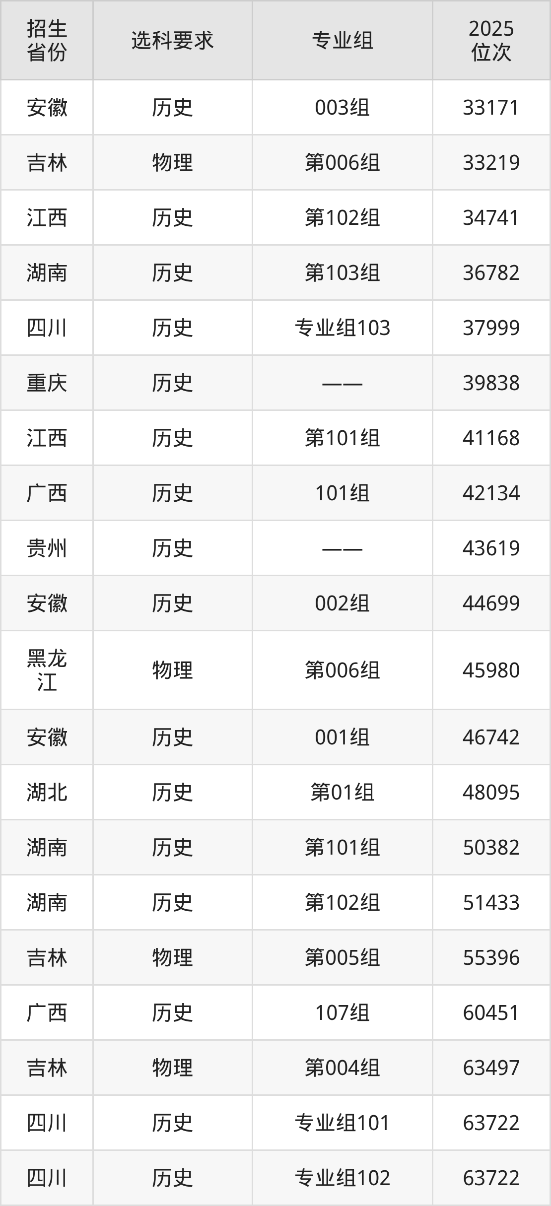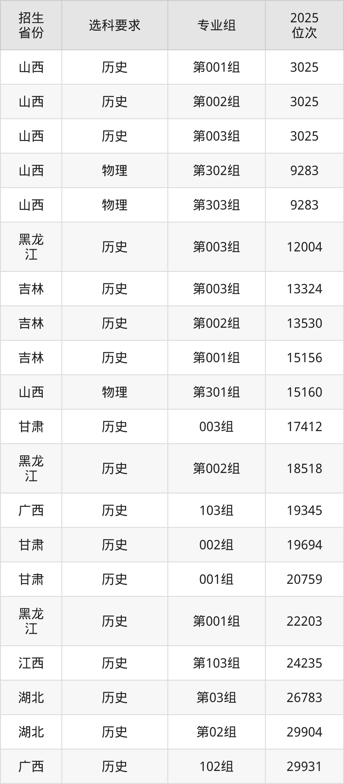 长沙卫生职业学院2025年在全国各省的位次差异较大,最高位次是3025位(山西历史类)、最低位次是312066位(广东物理类)。各省具体位次请看下图: