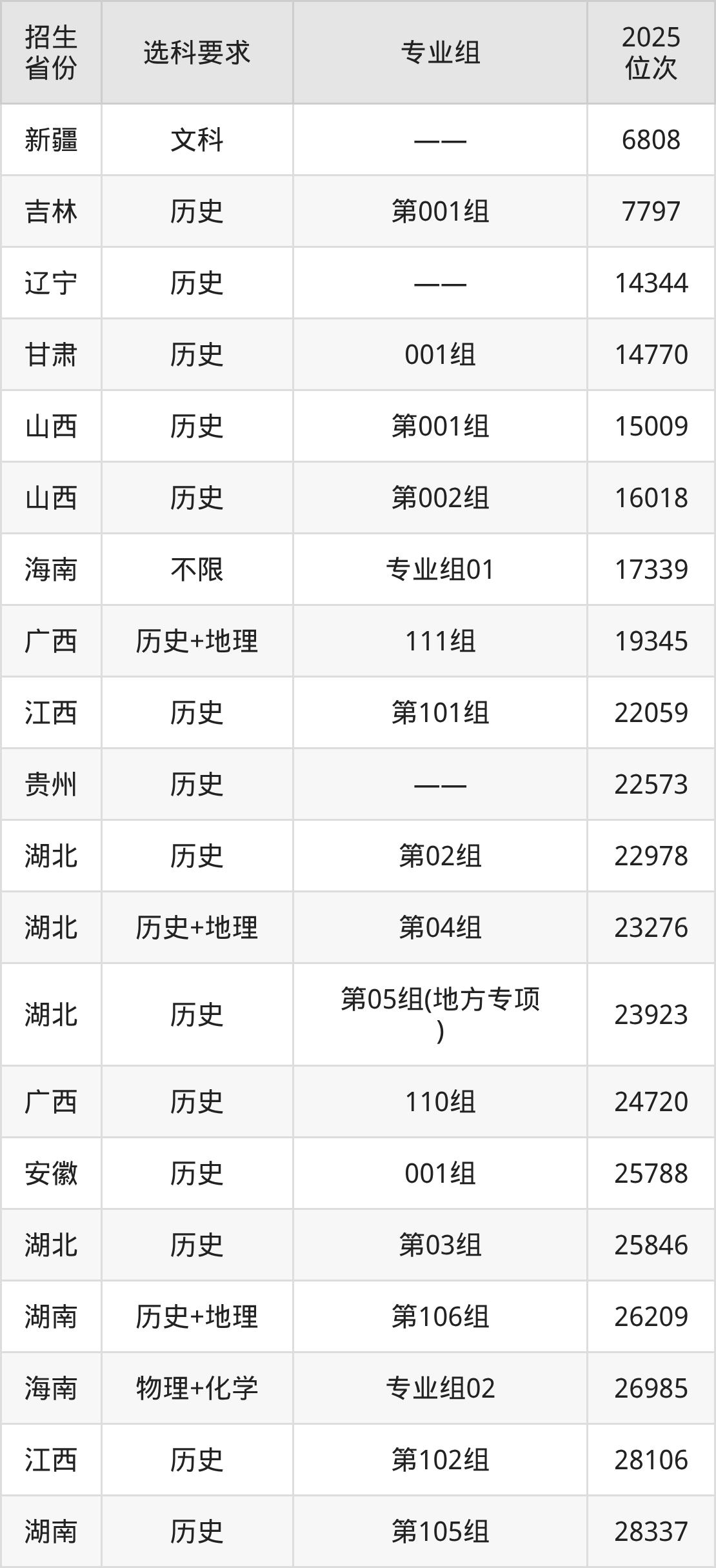 湖北科技学院2025年在全国各省的位次差异较大,最高位次是6808位(新疆文科)、最低位次是173388位(河南物理类)。各省具体位次请看下图: