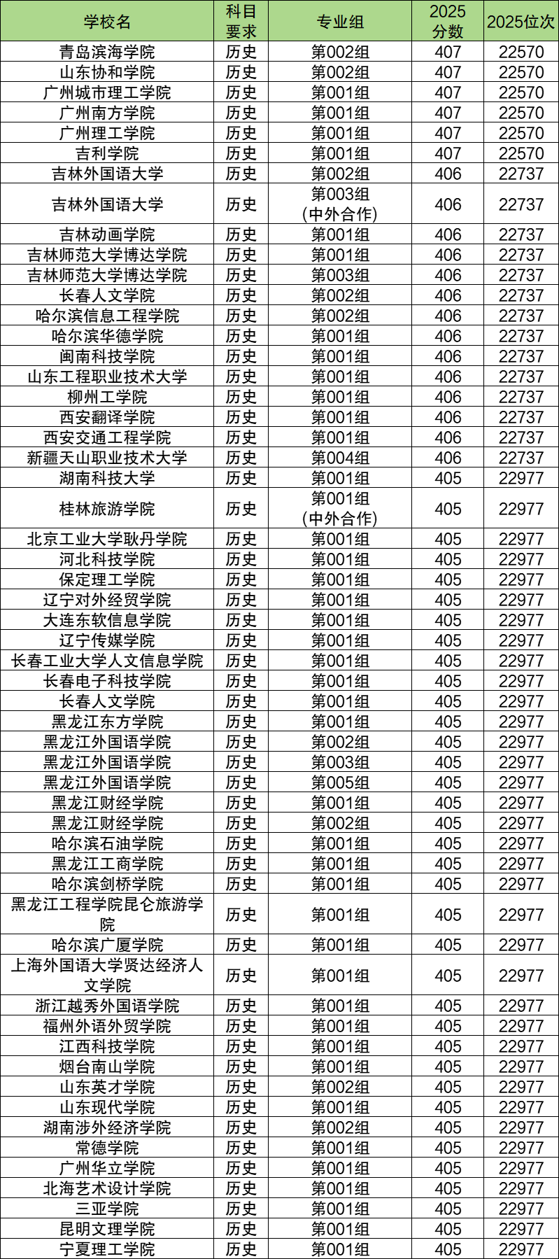 下面是2025年黑龙江历史类本科批分数线附近能上的本科大学名单一览表: