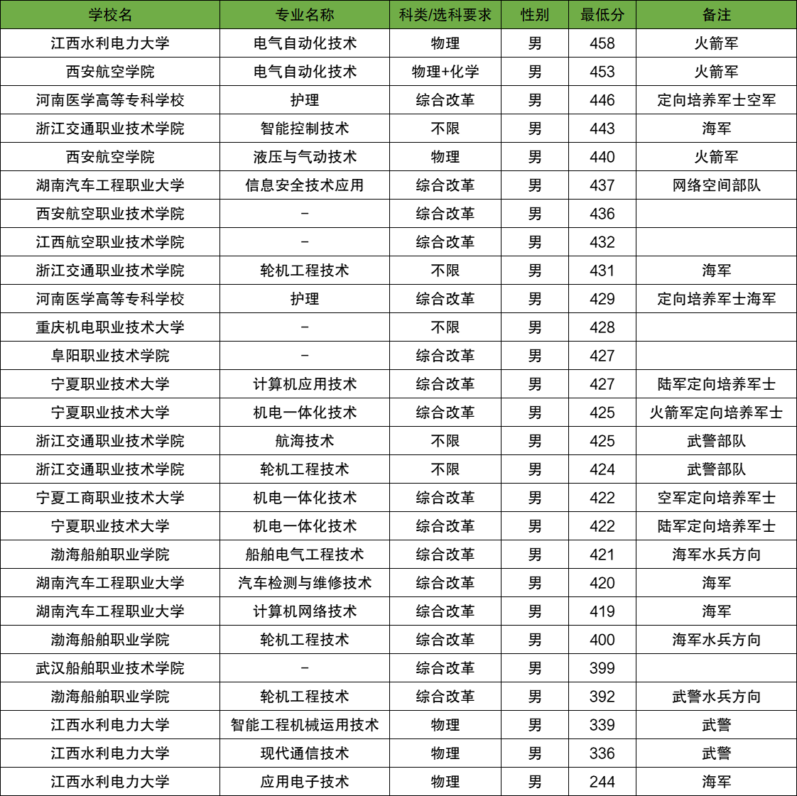 2025年面向男生招生的定向士官学校有江西水利电力大学、西安航空学院、河南医学高等专科学校、浙江交通职业技术学院、湖南汽车工程职业大学、西安航空职业技术学院、江西航空职业技术学院等。